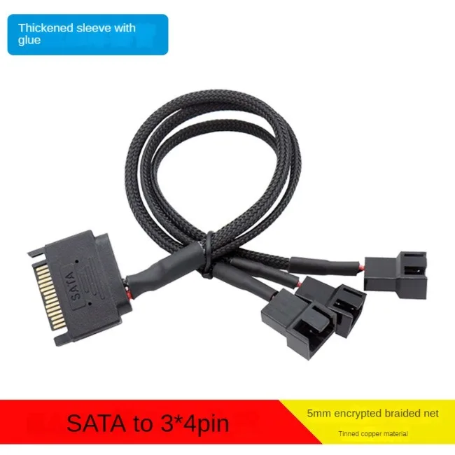 【Nombre del producto】: Cable de expansión de ventilador SATA a 4 pines Cable adaptador HUB de ventilador 【Esta interfaz es compatible con 3 pines】