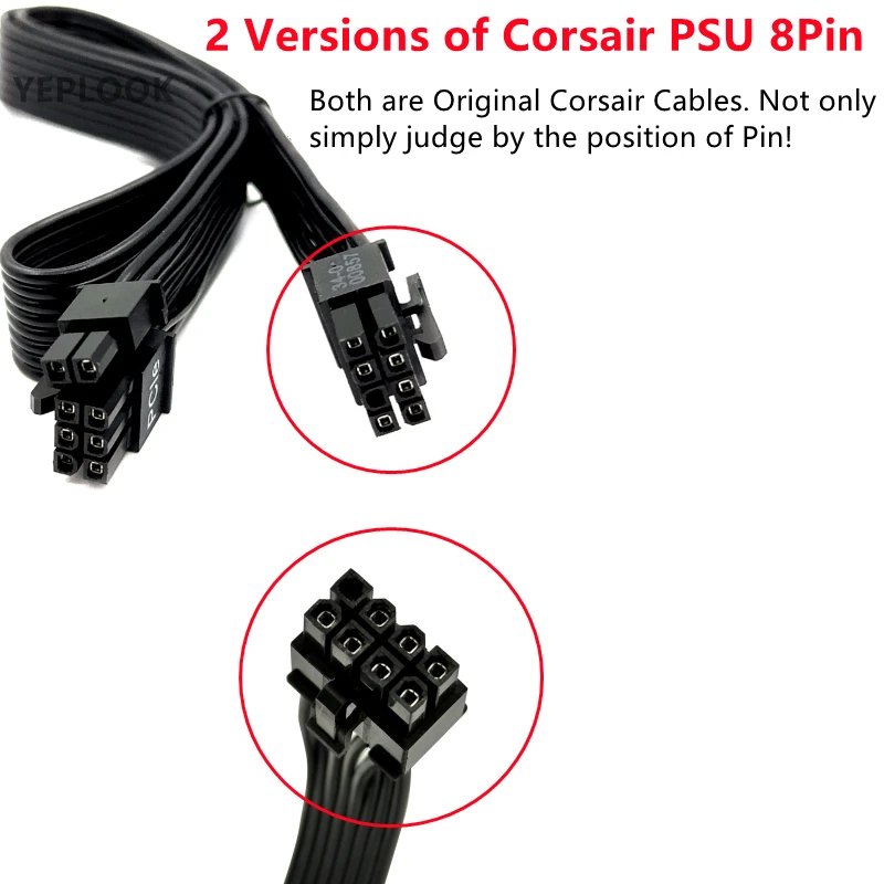 Cable de alimentación GPU individual PCI-e de 8 pines y 6 + 2 pines para Corsair RM1000i, RM850i, RM750i, RM650i Platinum Tipo 4 Potencia modular, 18AWG 60 CM