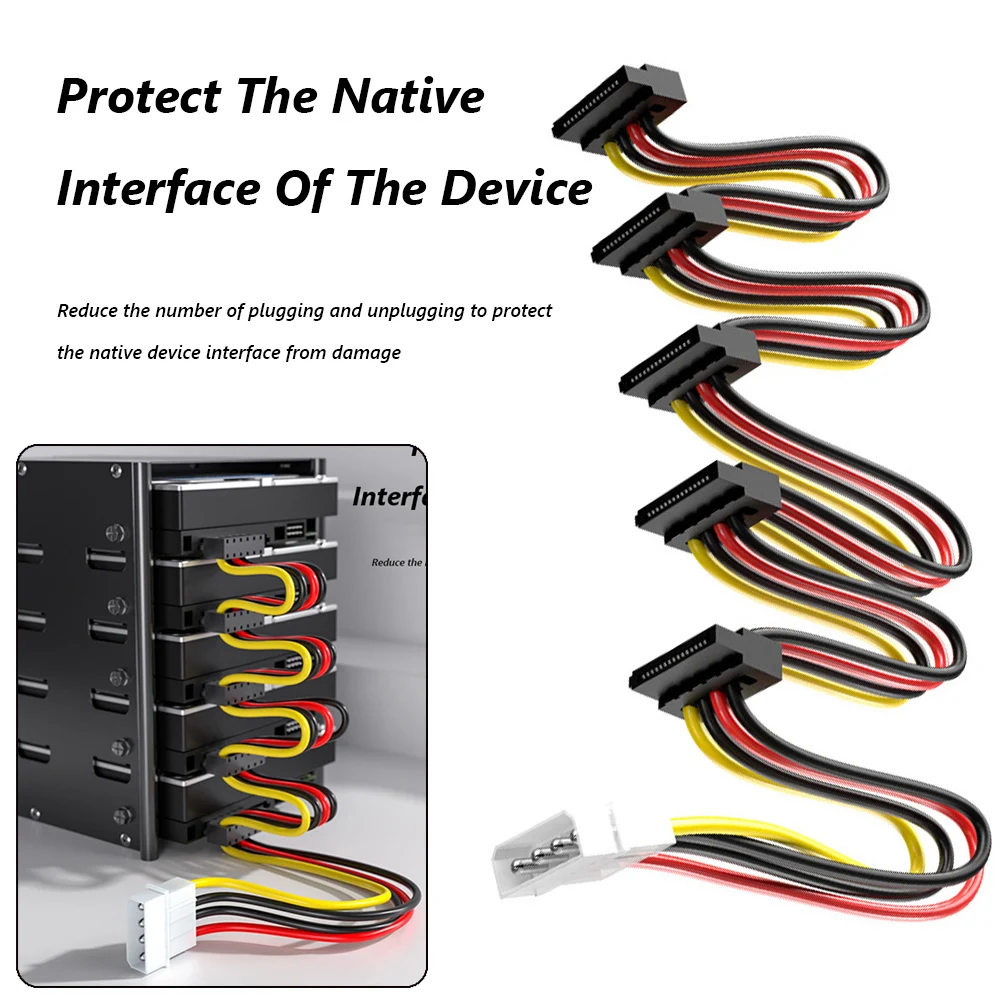 Comprar Cable de alimentación IDE de 18AWG a 3,5/2,5 pulgadas 15Pin SATA, Cable divisor de fuente de alimentación de disco duro de 1 a 5 enchufes, accesorios para PC