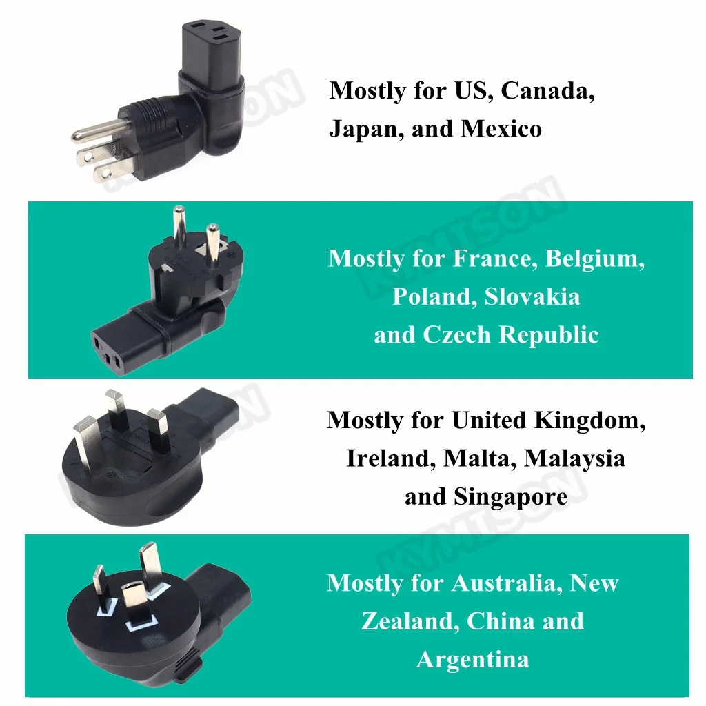 -Incluido nuestro cable de alimentación del servidor son 4 adaptadores de enchufe diferentes, por lo que puede cargar la electrónica en casi todos los países del mundo.