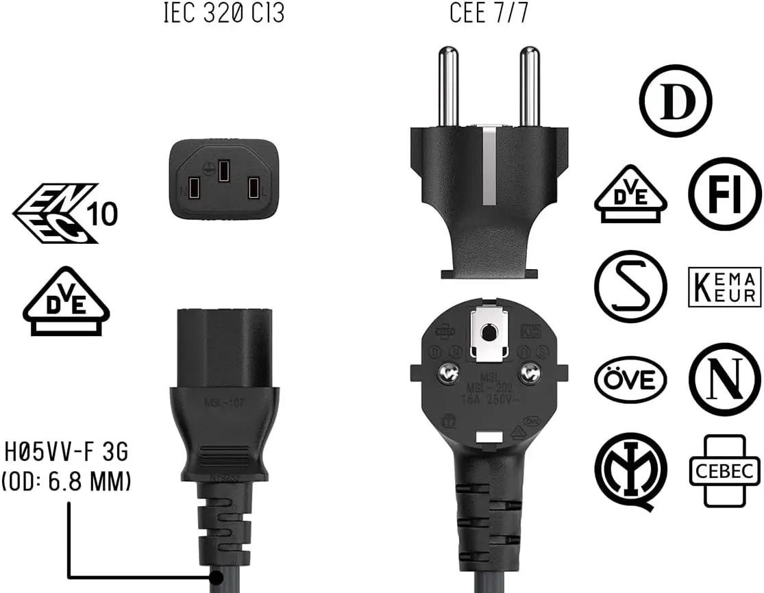 Comprar Cable de alimentación IEC C13 UE, Cable de extensión 10A, Cable de alimentación con enchufe europeo de 3m/10 pies para TV HP, Dell, PC, Monitor de ordenador, impresora