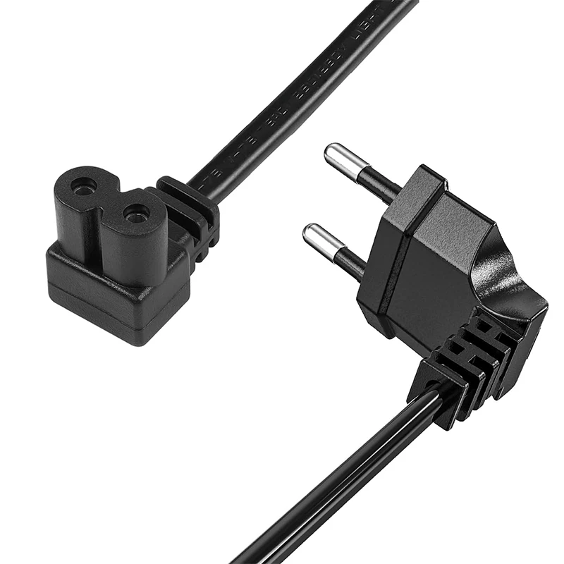 Cable de alimentación IEC C7 Figura 8 Euro UE Ángulo de 90 grados Cable de alimentación de CA de 2 puntas para Samsung Philips Sony LED TV portátil