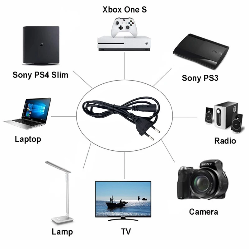Cable de alimentación IEC320 C7 AC EU US, cables de extensión de 2 pines para cargador de portátil Dell, impresora Canon Epson, altavoz de Radio PS4 XBOX LG Sony