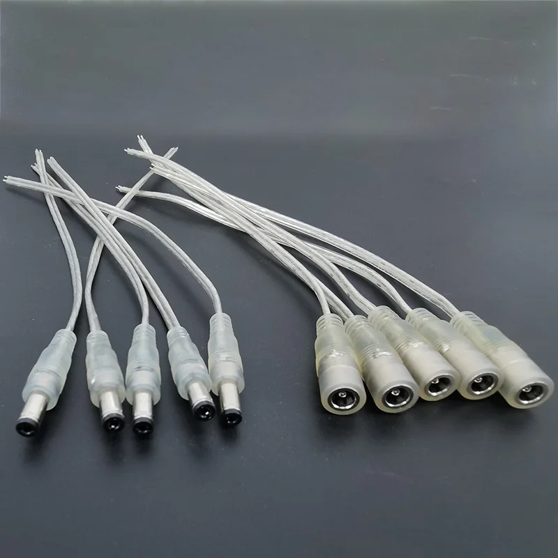 5 unids/lote 22AWG Cable DC macho DC hembra Cable de alimentación Jack adaptador 5,5mm x 2,1mm conector 2 pines LÍNEA DE Cable Pigtail