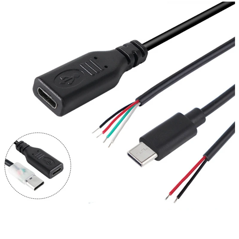 Comprar Cable de alimentación Micro USB tipo C, 2 pines, USB 2,0 A, hembra, macho, Cable de 4 pines, cargador, Cable de carga, conector de extensión DIY
