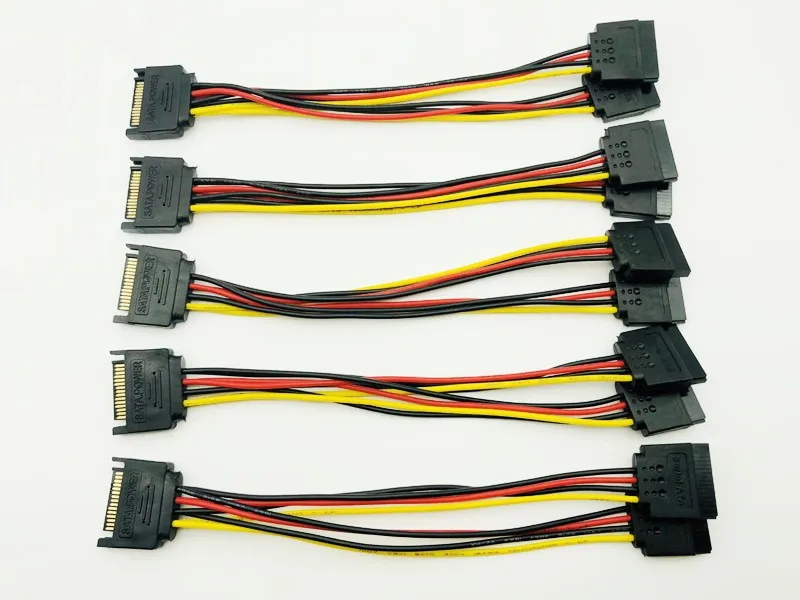 Comprar Cable de alimentación de ordenador, conector divisor SATA macho a 2 hembra de 15 Pines, Serial ATA, HDD, para minería BTC ETH, 5 uds.