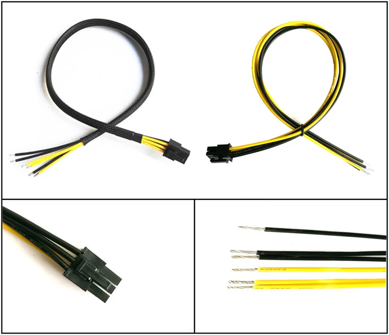 * Conector macho negro PCI-E de 6 pines a cable desnudo con sólido de 10mm.