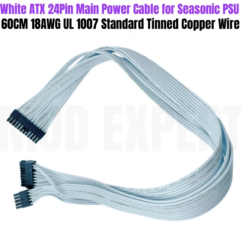 Cable de alimentación de placa base ATX blanco de 18 + 10 pines a 24 pines para Seasonic FOCUS de, edición blanca de oro, fuente de alimentación modular completa de 60CM, 18AWG