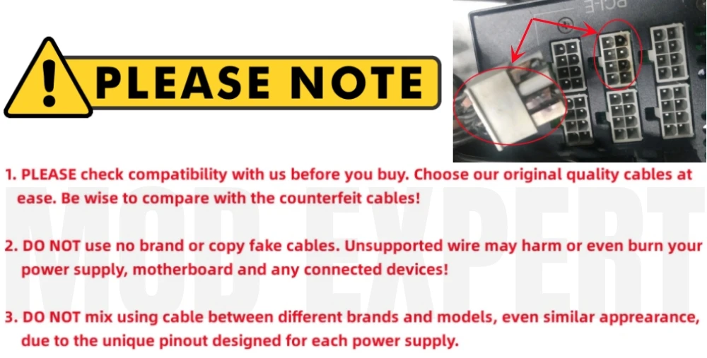 Lista de embalaje1 cable original PCIe Dual de 8 pines, 1 brida de nylon de regalo.