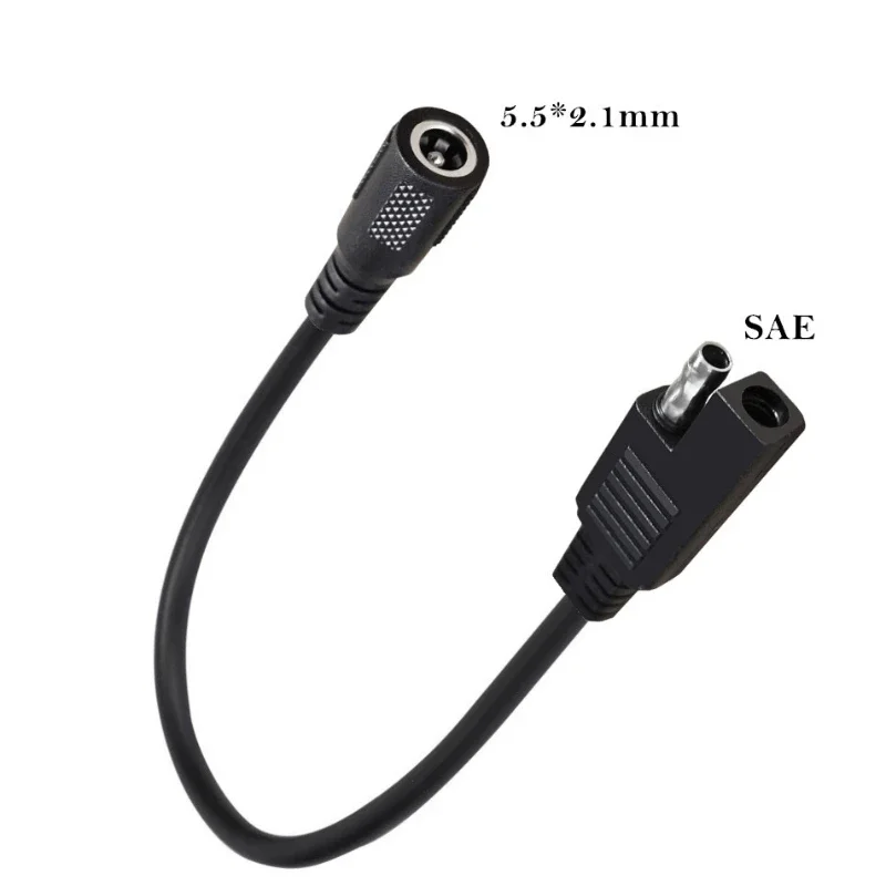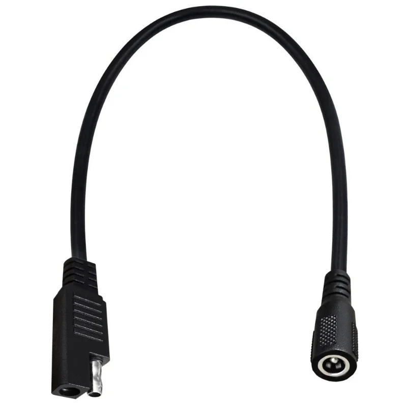 1. Cable adaptador hembra SAE a DC 5521, utilizado para conectar motocicletas con enchufes coaxiales (5,5x2,1mm) a tomas de corriente SAE.