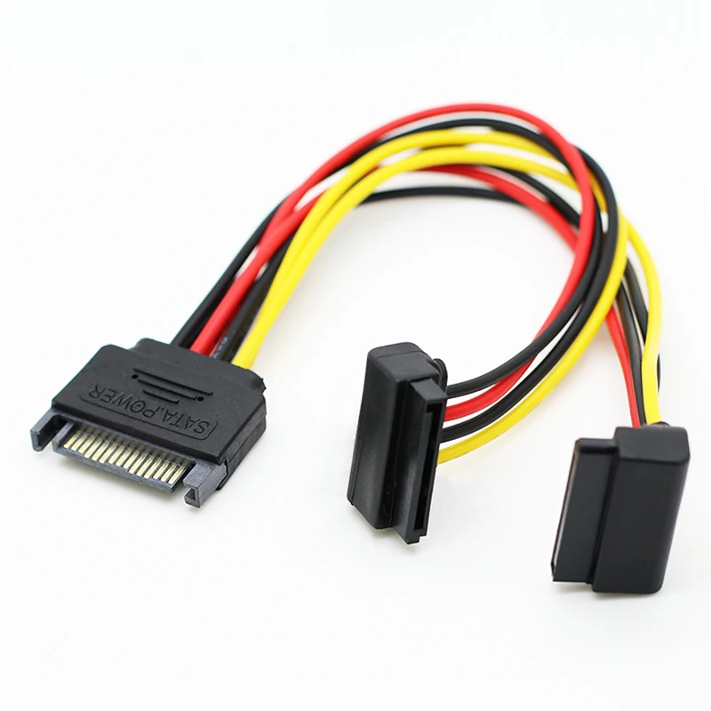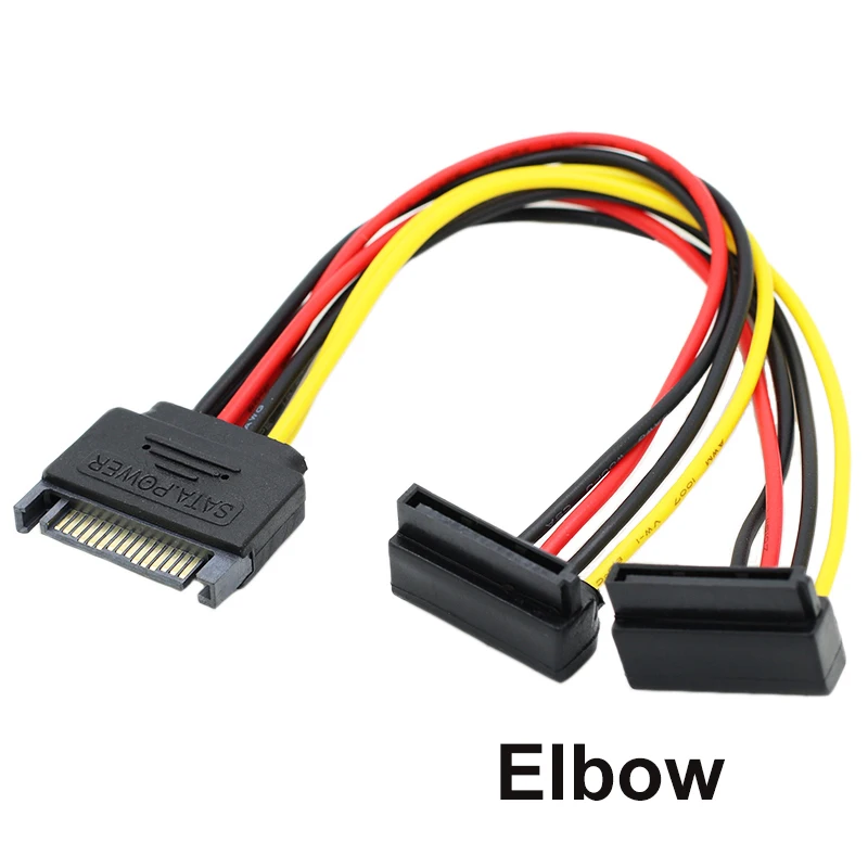 1 Uds. Codo recto de 20CM y 90 grados SATA 15 pines macho a 2 x 15P hembra Y 15 pines Cable de alimentación adaptador de conector divisor HDD