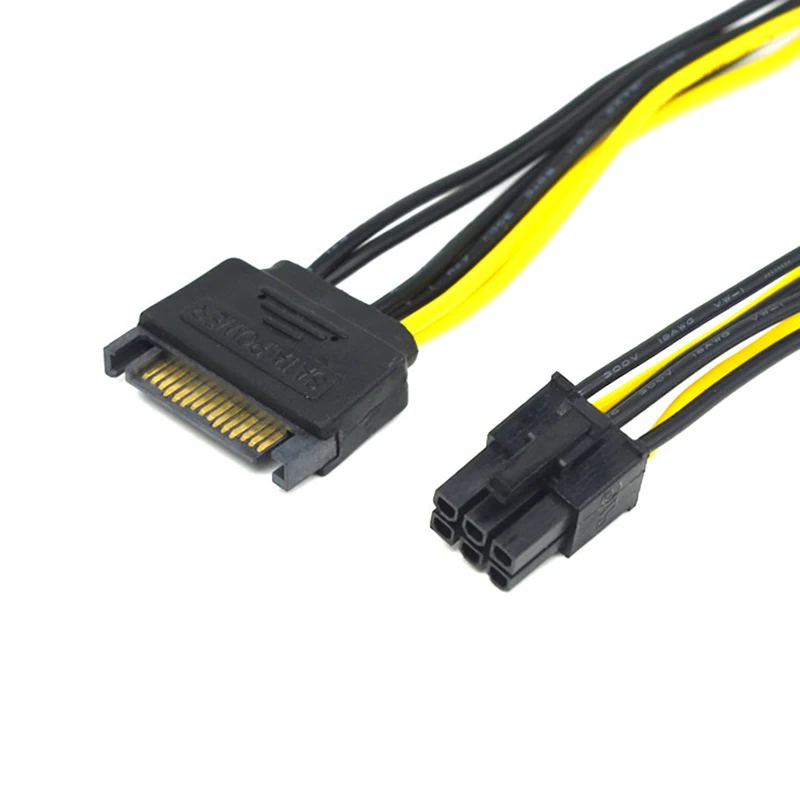 Comprar Cable de alimentación de tarjeta gráfica SATA a 6 pines, 5 piezas, 20CM, 15pin a 6pin, PCIe, PCI-e, PCI Express, adaptador de fuente de alimentación para minería