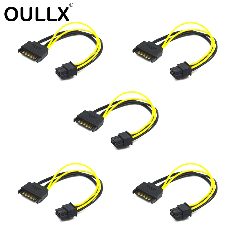 OULLX 5 piezas 20CM SATA a 6pin tarjeta gráfica Cable de alimentación SATA 15pin a 6pin PCIe PCI-e PCI Express adaptador fuente de alimentación para minería