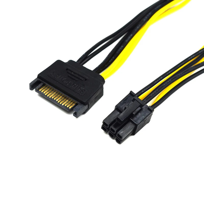 Comprar Cable de alimentación de tarjeta gráfica SATA a 6 pines, fuente de alimentación para minería, 5 piezas, 20CM, 15pin a 6pin, PCIe, PCI-e, PCI Express