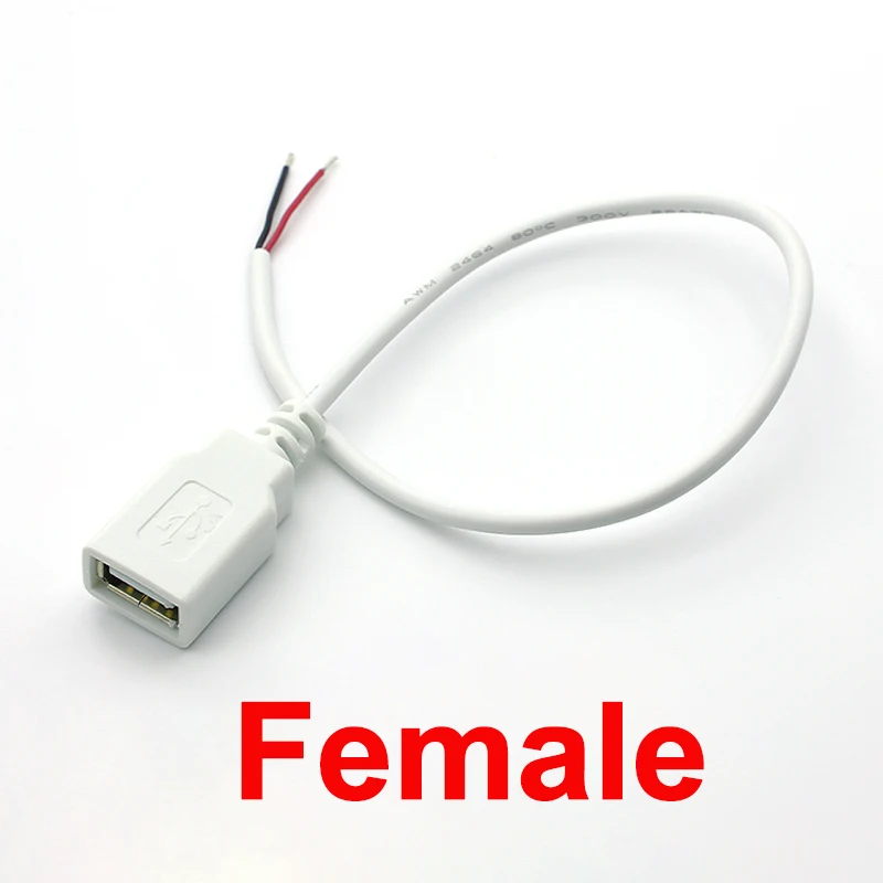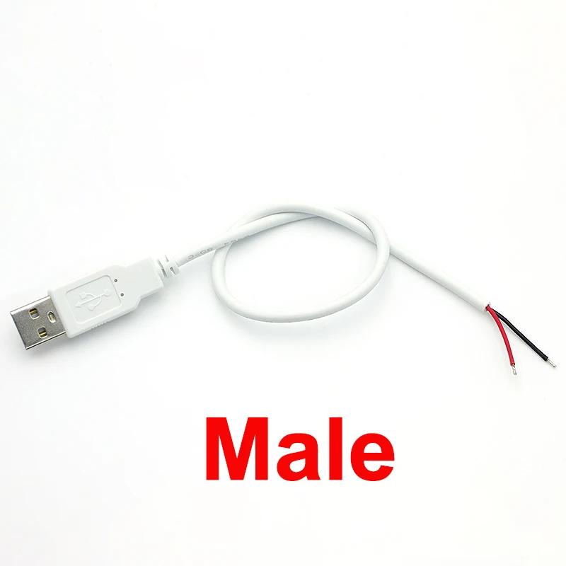 Nombre del producto: Cable de alimentación USB2.0 hembra/macho de 2 pines Cable de carga de 2 núcleos para bricolaje