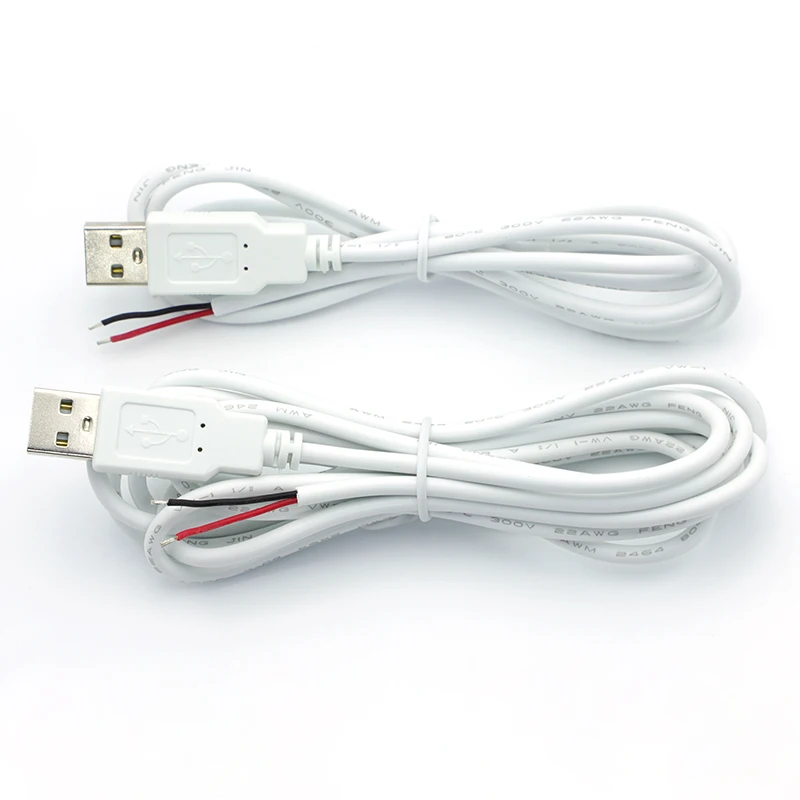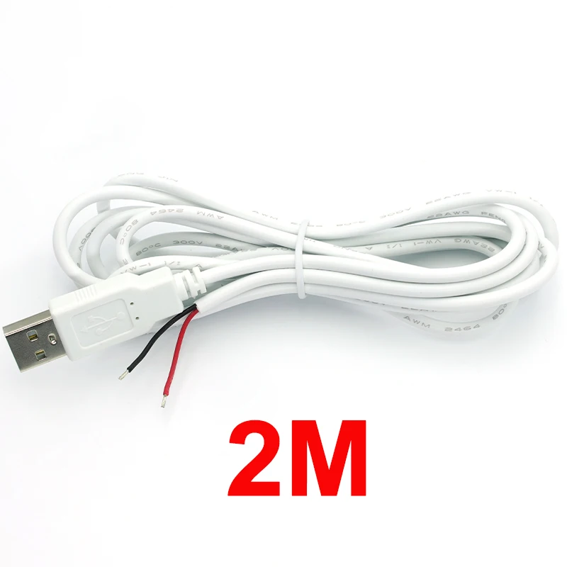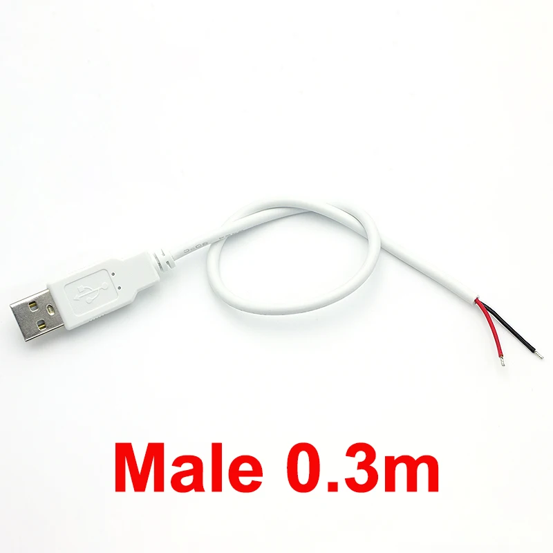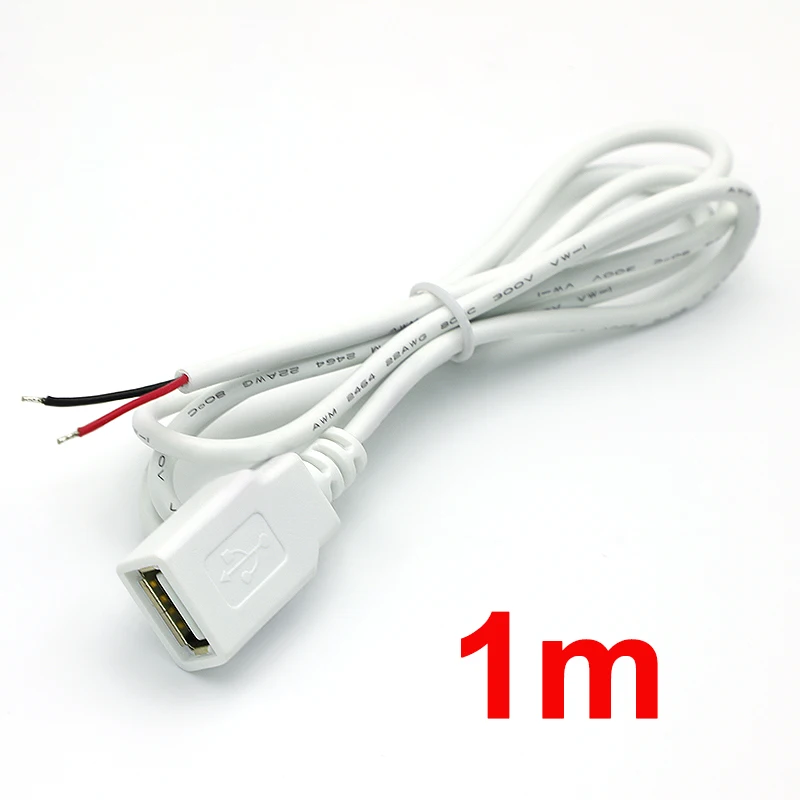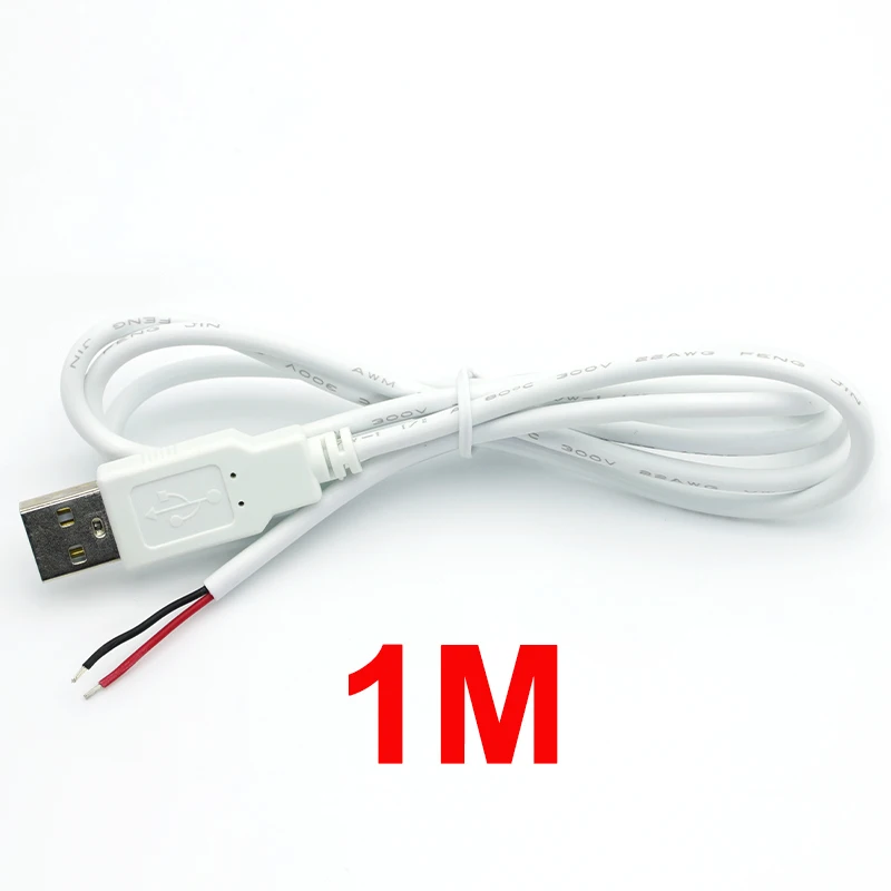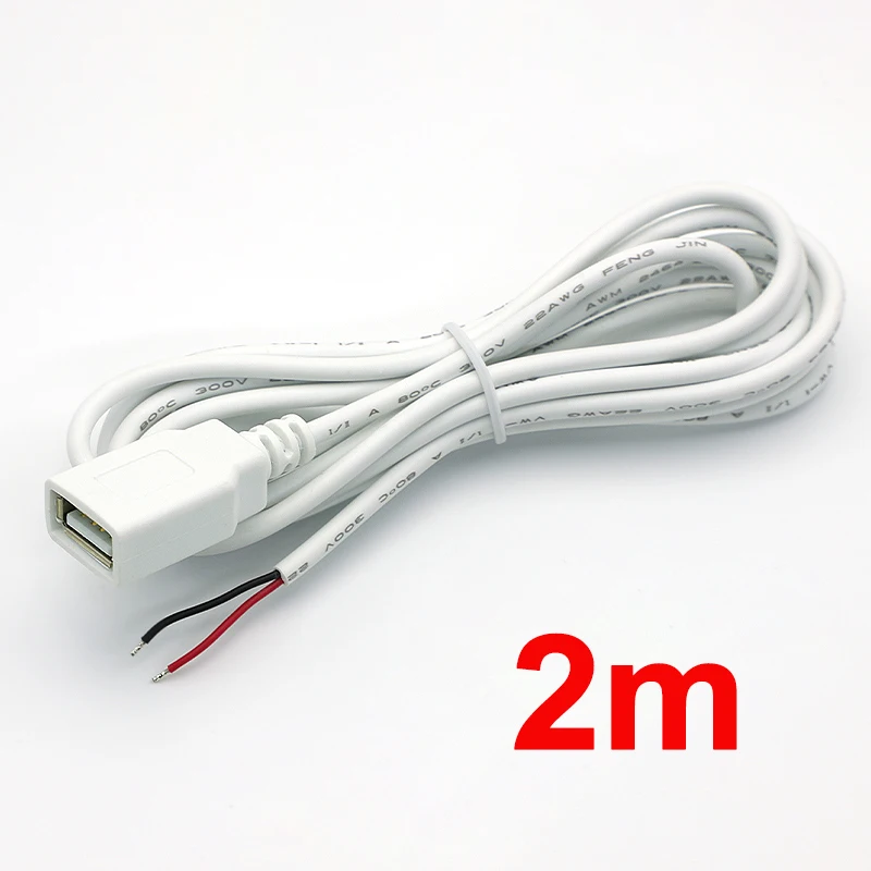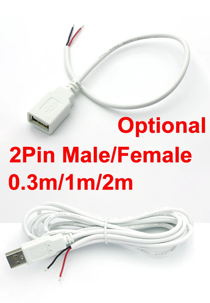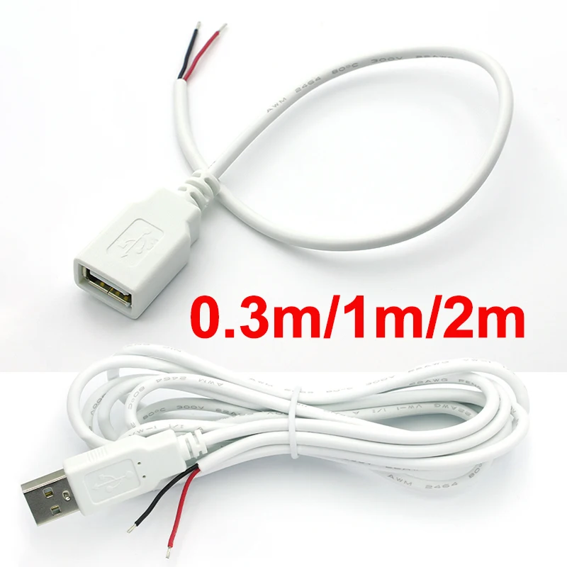 Comprar Cable de alimentación USB de 0,3 m/1m/2m, 2 pines, USB 2,0 A, cargador macho hembra, Cable de carga, conector de extensión, cable blanco DIY
