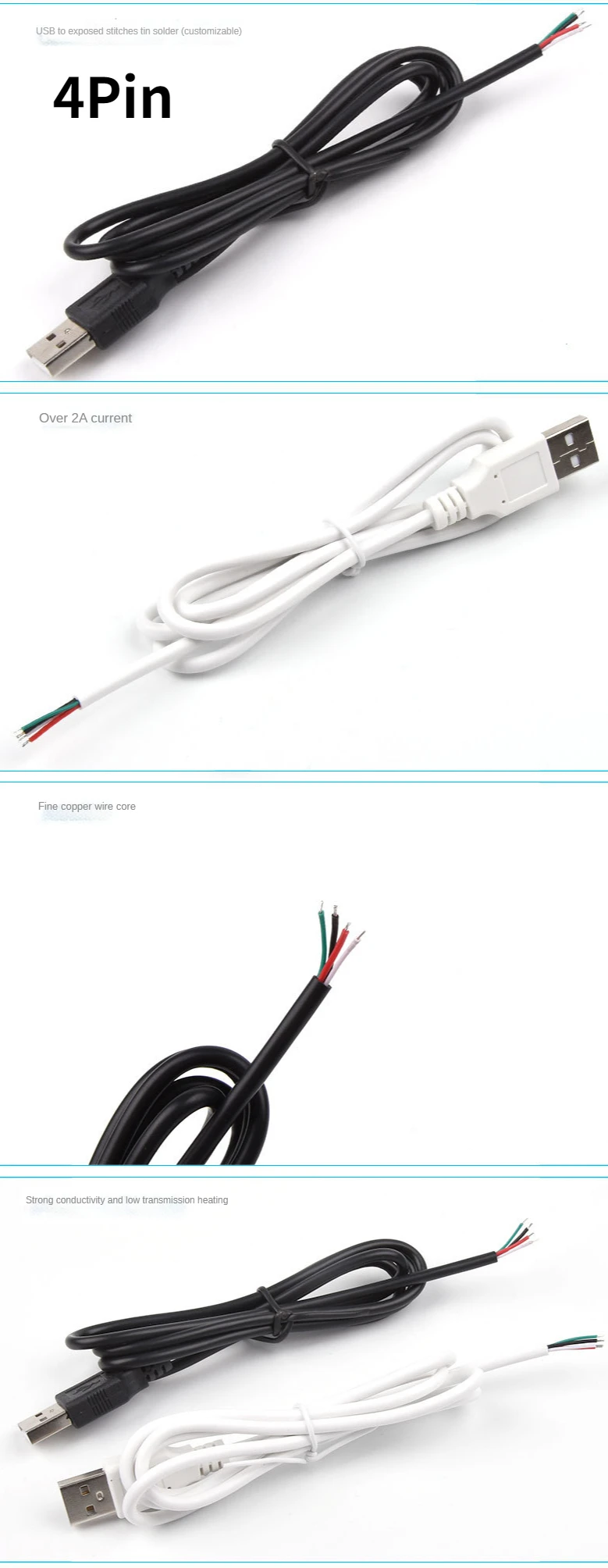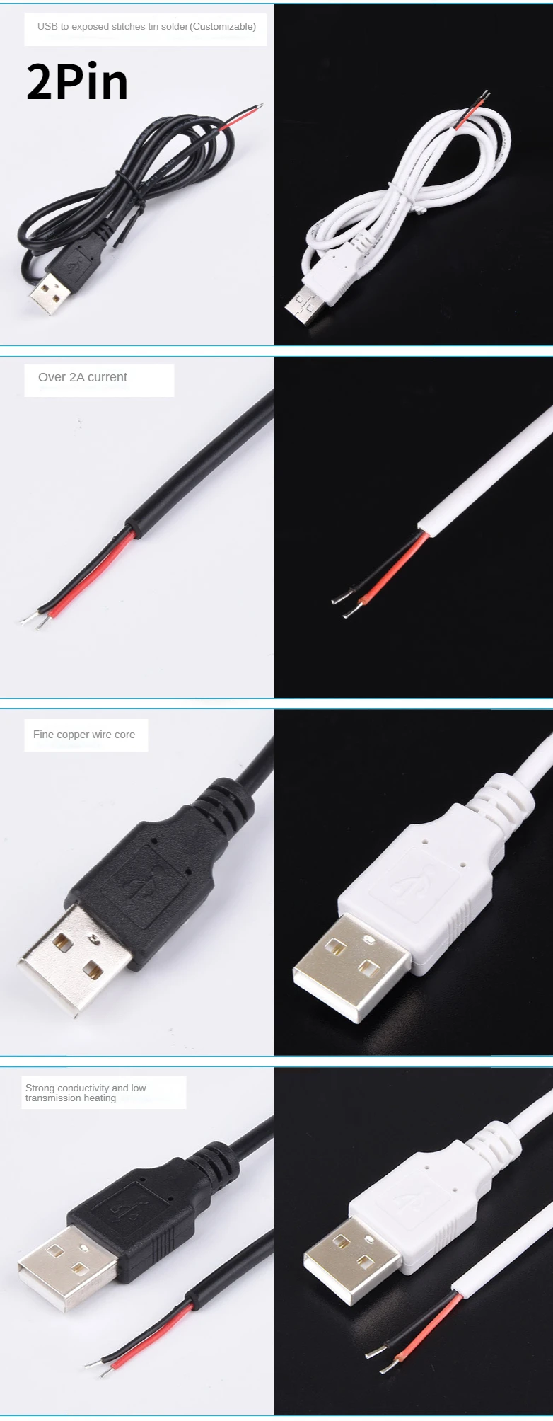 Comprar Cable de alimentación USB de 1M y 5V para manualidades, Conector de extensión de Cable de carga de 2,0 A macho A 4 pines, 2 pines, blanco y negro