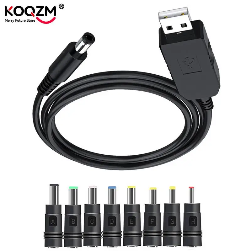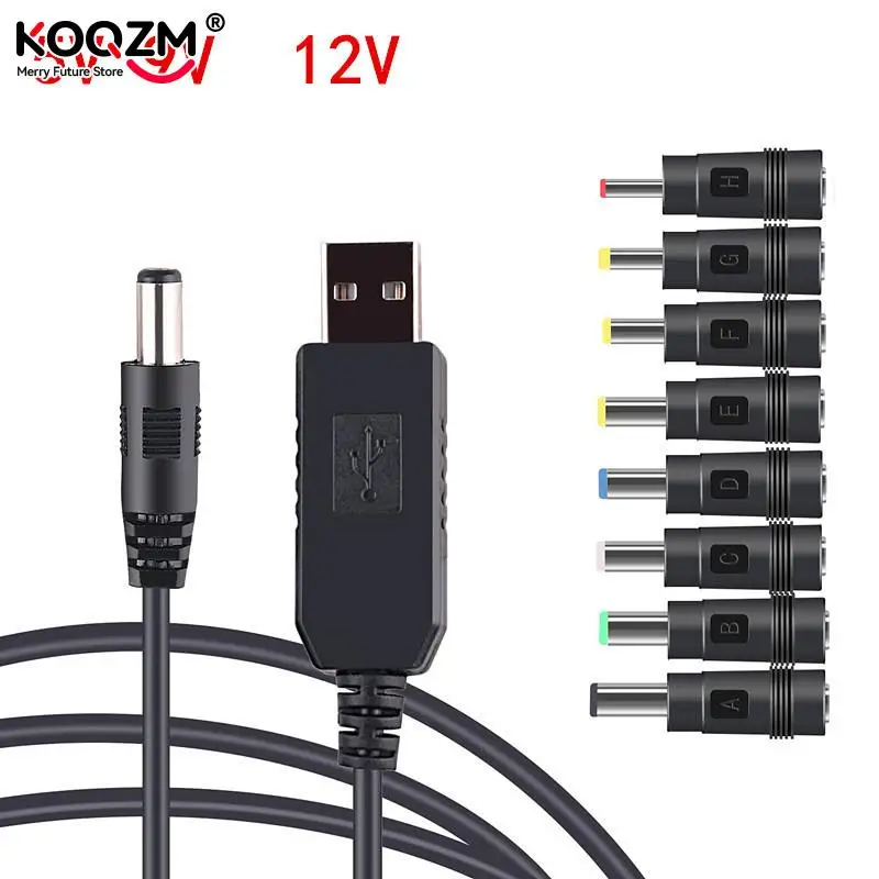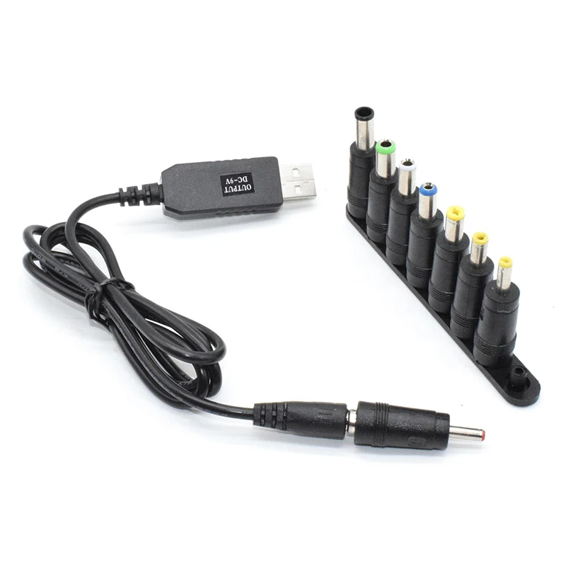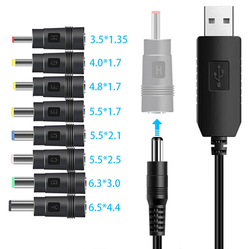 Comprar Cable de alimentación USB a CC, convertidor de impulso de 5V a 9V y 12V, 8 adaptadores, Cable de carga USB a conector de CC para enrutador Wifi, Mini altavoz de ventilador