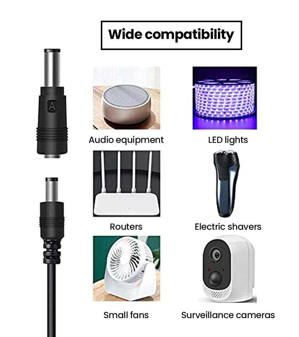 Cable de alimentación USB a CC con 5 enchufes CC, adaptador de enchufe de Cable de carga USB para enrutador, Mini ventilador, altavoz, conector de cámara