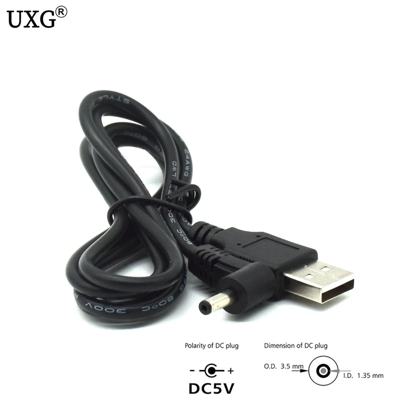 USB a 5,5mm/2,1mm 5 voltios DC Barril Jack Cable de alimentación Tipo M 5,5mm 1 m 3 pies