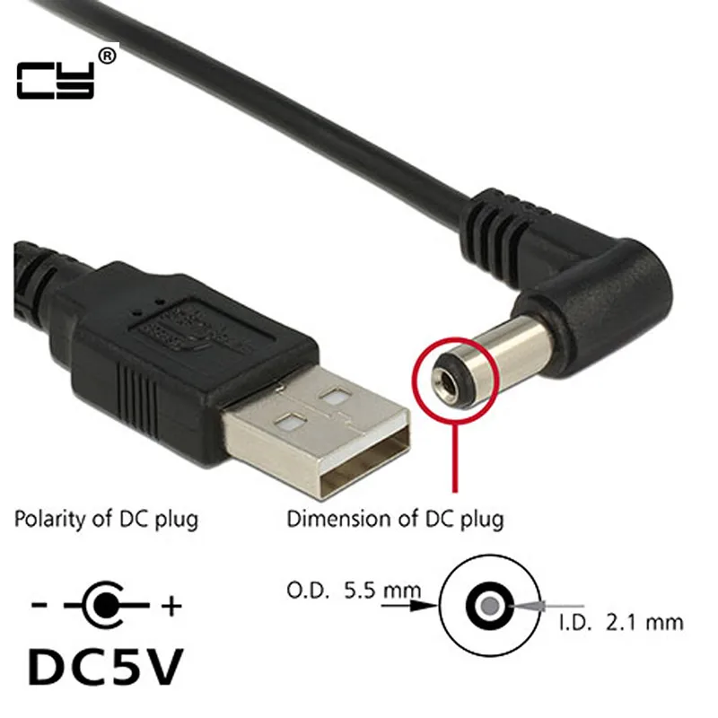 Comprar Cable de alimentación USB macho a 5,5mm x 2,1mm, Conector de transferencia de CA, convertidor de interfaz de cargador, 1 piezas, 5,5x2,1, 1 m, 2m