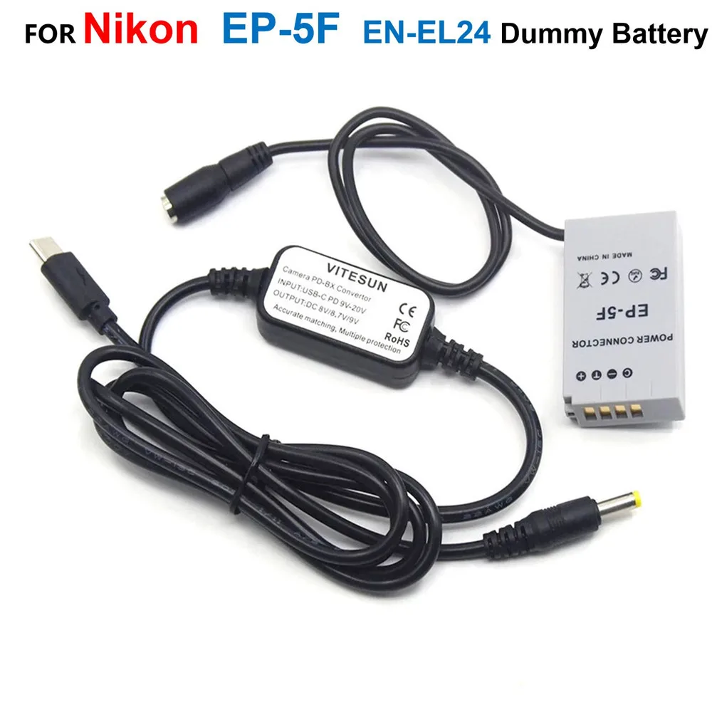 EN-EL24 ENEL24 EP-5F Acoplador CC Convertidor USB tipo C USB-PD a Cable CC para cámara Nikon 1 J5 1J5