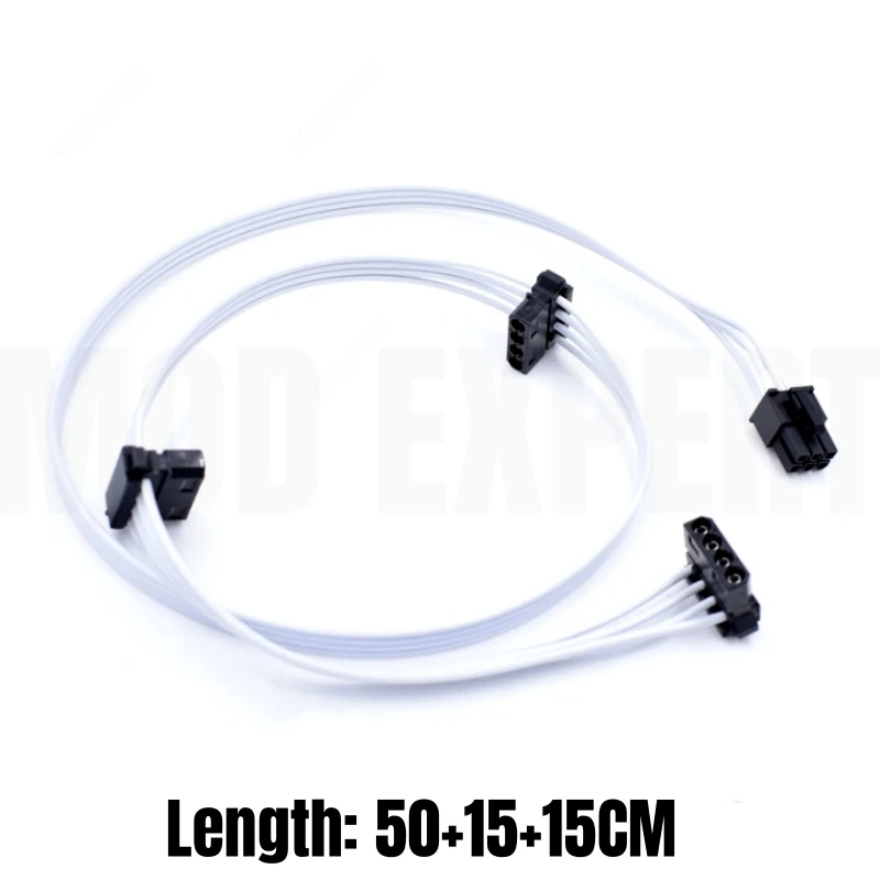 Cable de alimentación de ventilador de caja en ángulo blanco de 6 pines a 3 Molex IDE de 4 pines para Seasonic PRIME, FOCUS, Platinum, CORE, M12II EVO, SnowSilent PSU 18AWG 50 + 15 + 15CM
