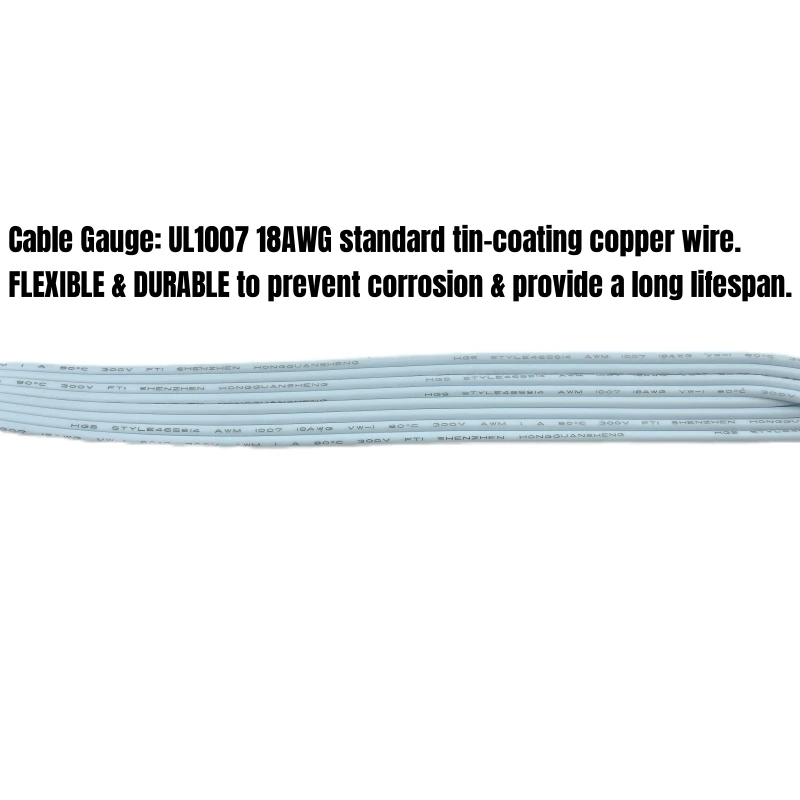 Material: Hecho de alambre de cobre estañado UL1007 18AWG. Resistente al calor, no envejece fácilmente, muy duradero.