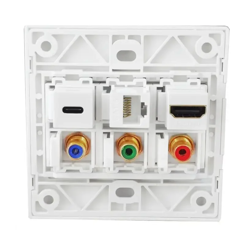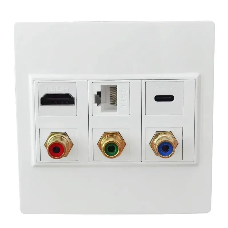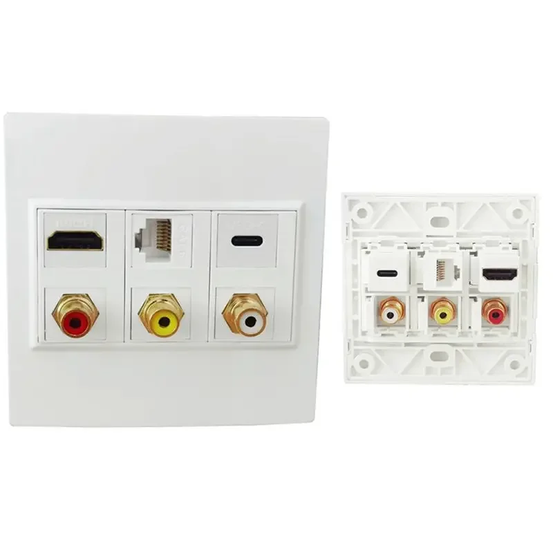 Cable de alta definición 4K, enchufe compatible con HDMI + CAT6 + USB C + Audio y video, 3rca enchufe de pared, panel multimedia Tipo 86;