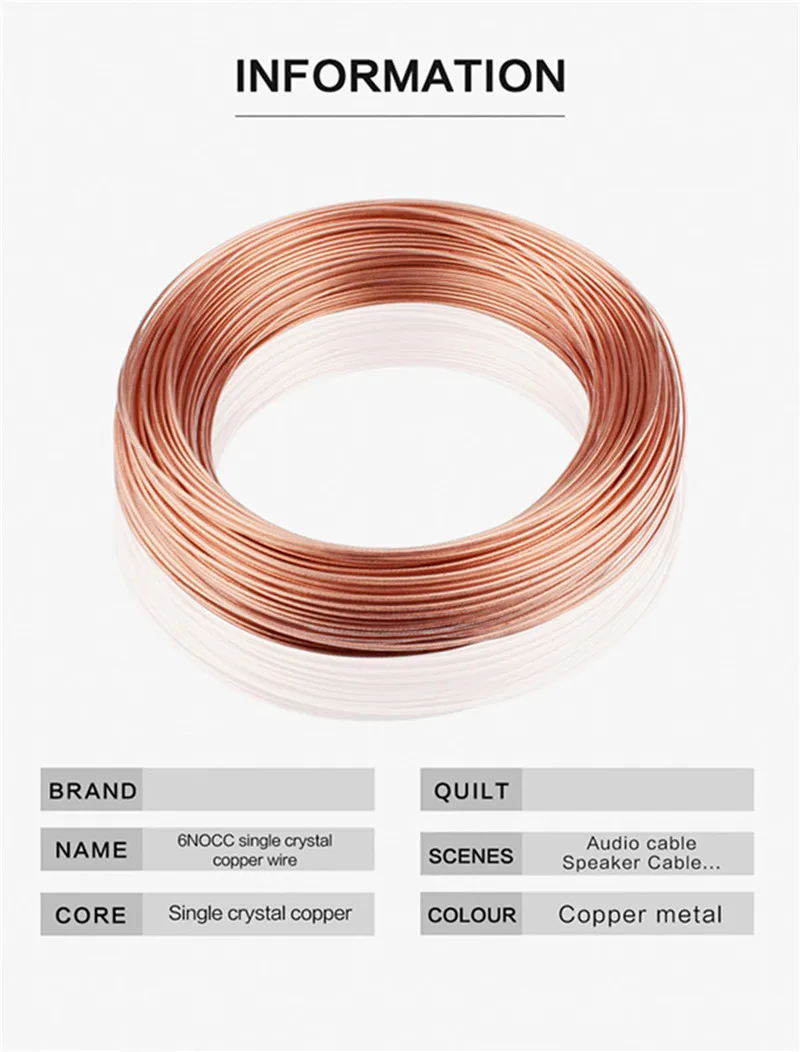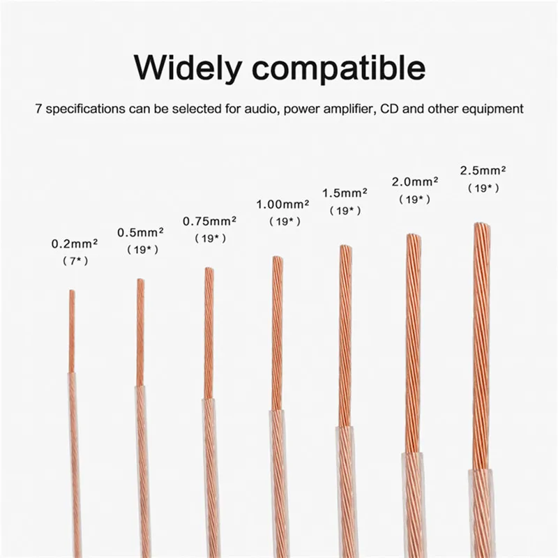 Cable de altavoz 6N OCC, Cables de línea de Audio de actualización Hifi de cobre de un solo cristal 0,2 0,5 0,75 1 1,5 2 2,5 cuadrados para amplificador de potencia