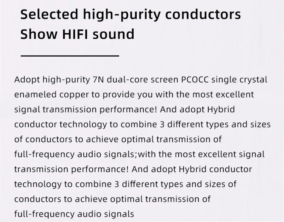 1.Características de sonido: Esta línea pertenece al tipo grueso y grueso. Es adecuada para sistemas con potencia analítica insuficiente y sonido débil.PC ultrapuro cobre monocristalino.Delicado, suave y transparente.