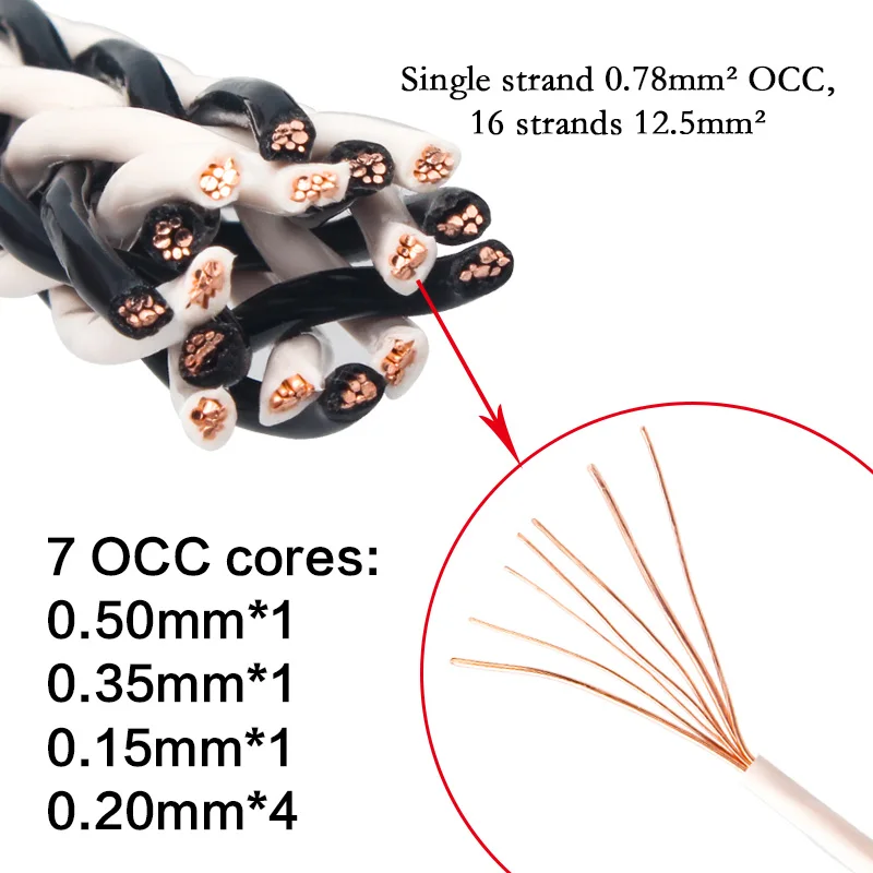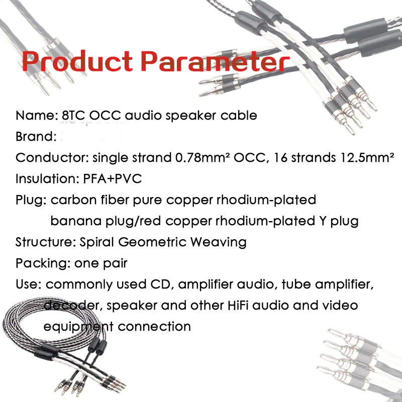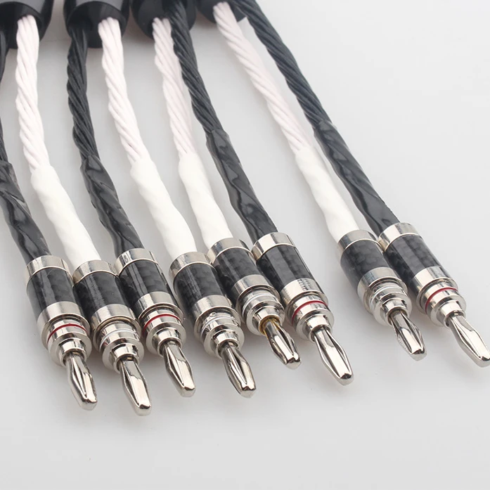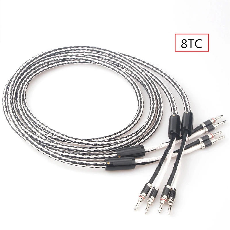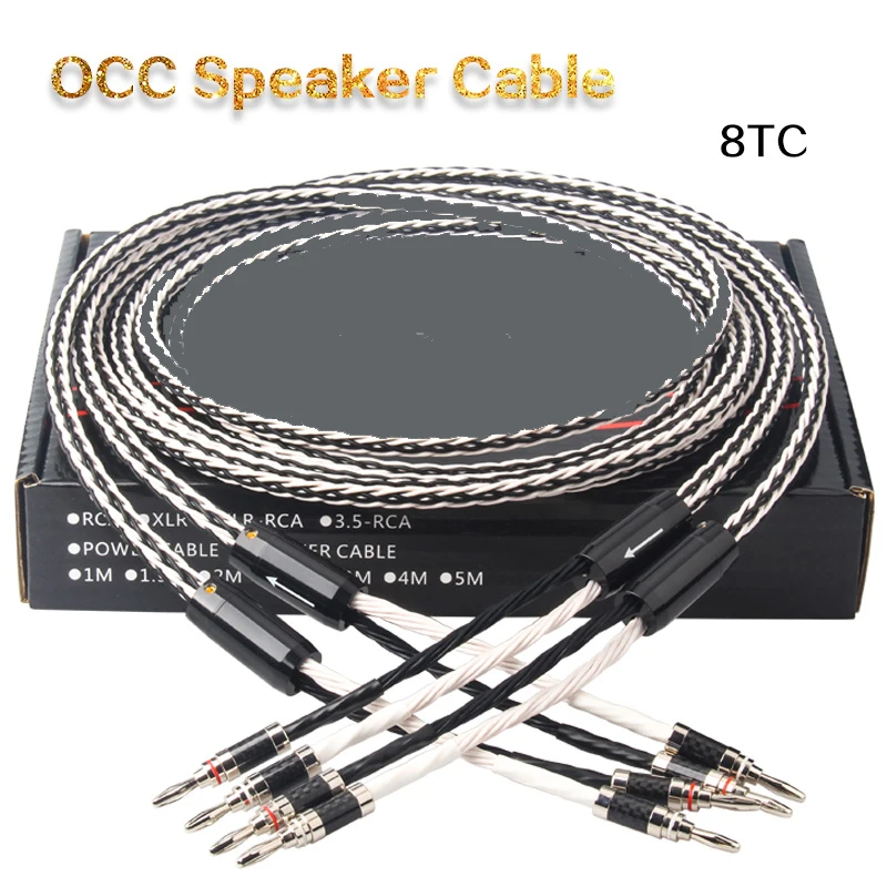 Cable de altavoz de Audio OCC de cobre y cristal único, 8TC, amplificador HiFi, Cable de altavoz, conector Banana, clavija Banana, edredón FEP
