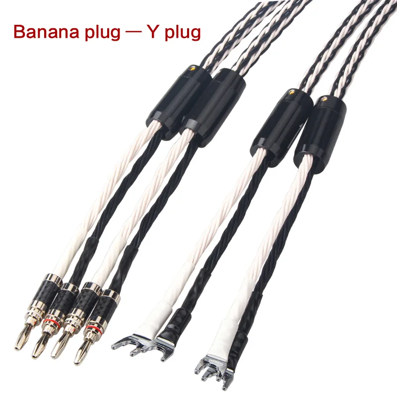 Comprar Cable de altavoz de Audio OCC de cobre y cristal único Hifi 8TC, amplificador HiFi, Cable de altavoz, enchufe Banana, colcha FEP Plug-Y Banana