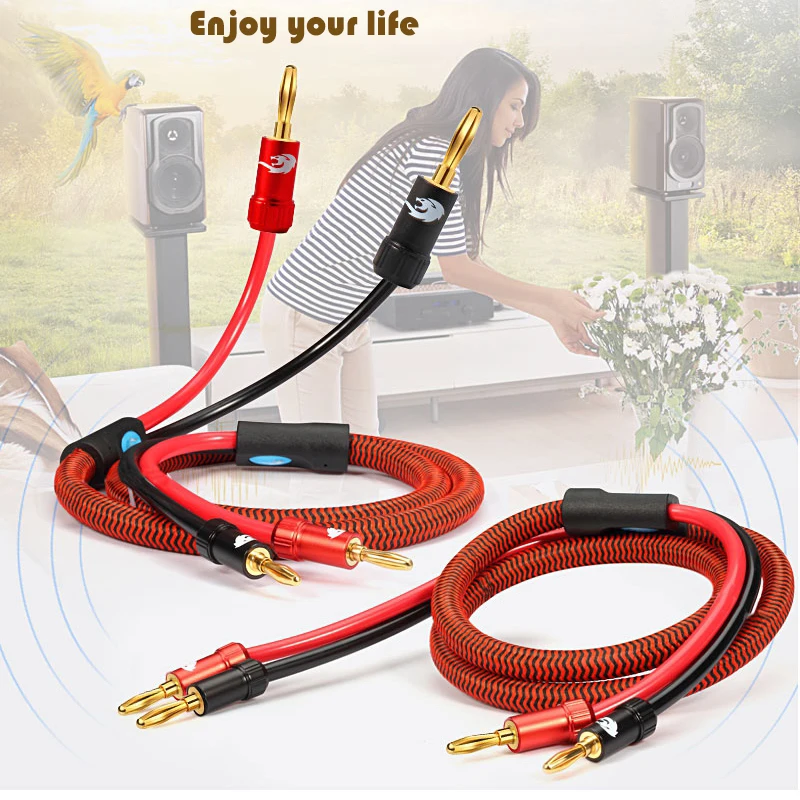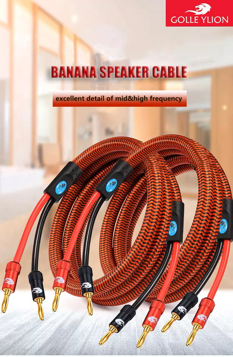 Comprar Cable de altavoz Hifi con conector Banana para cine en casa, amplificador de Audio, subwoofer, chapado en oro, 1M, 2M, 3M, 5M, 8M