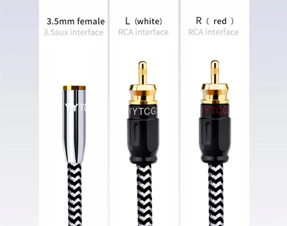 -1 Conector de 3,5mm hembra a 2 cables RCA, divisor de audio 1 a 2, cable de altavoz HiFi(Elija más cantidad, más barato)
