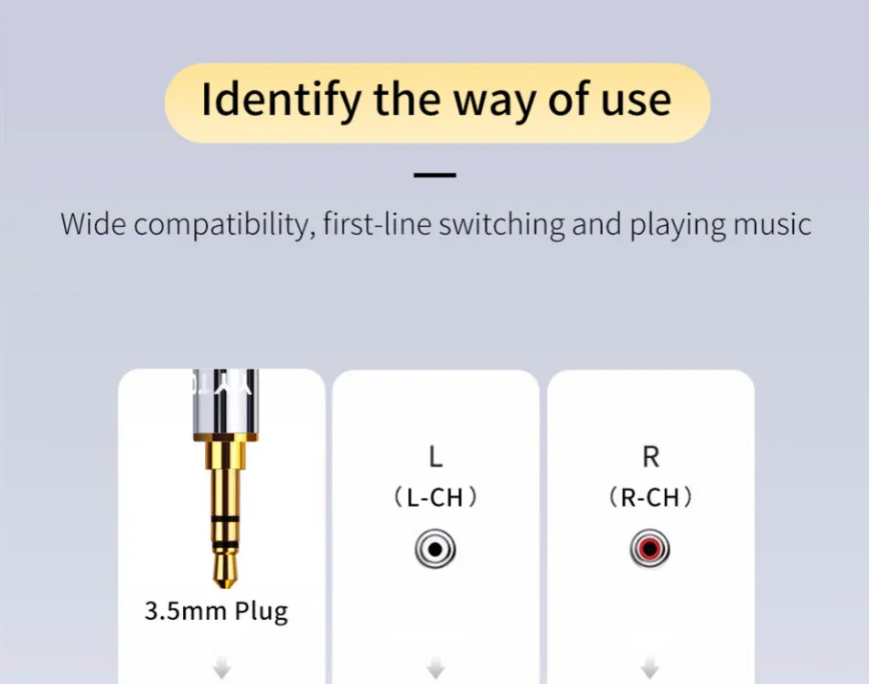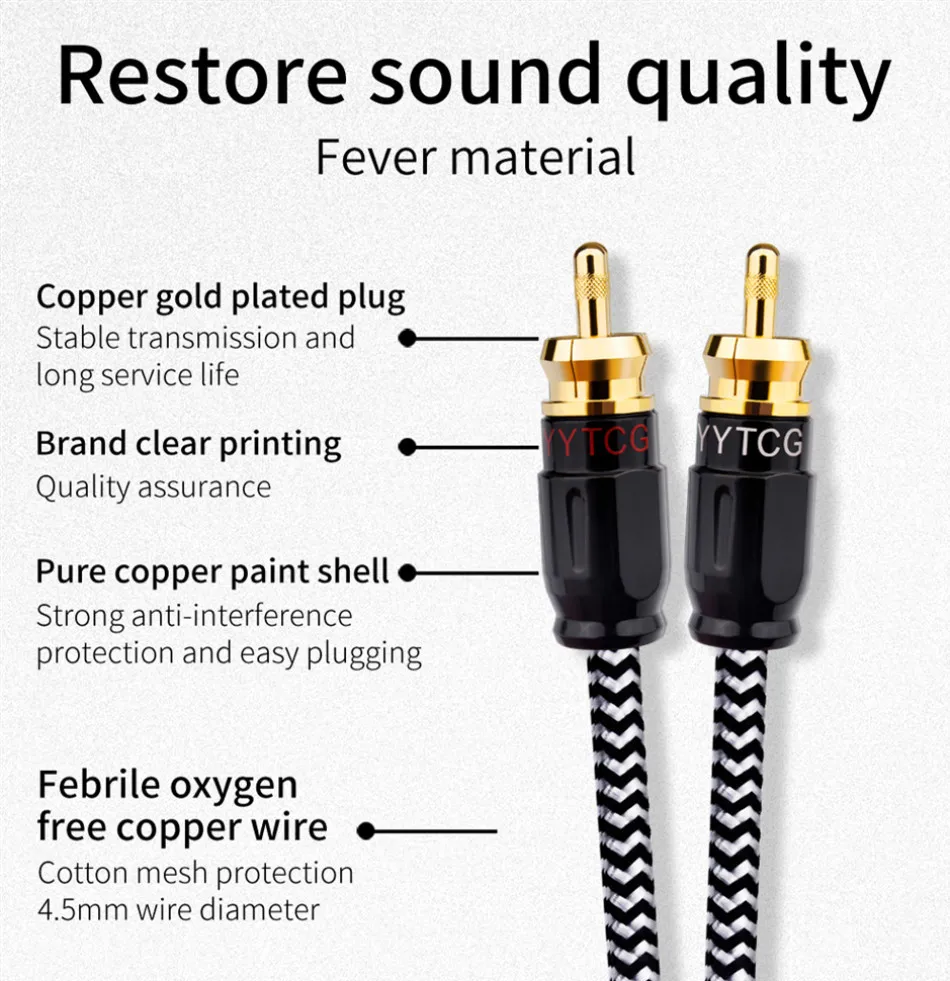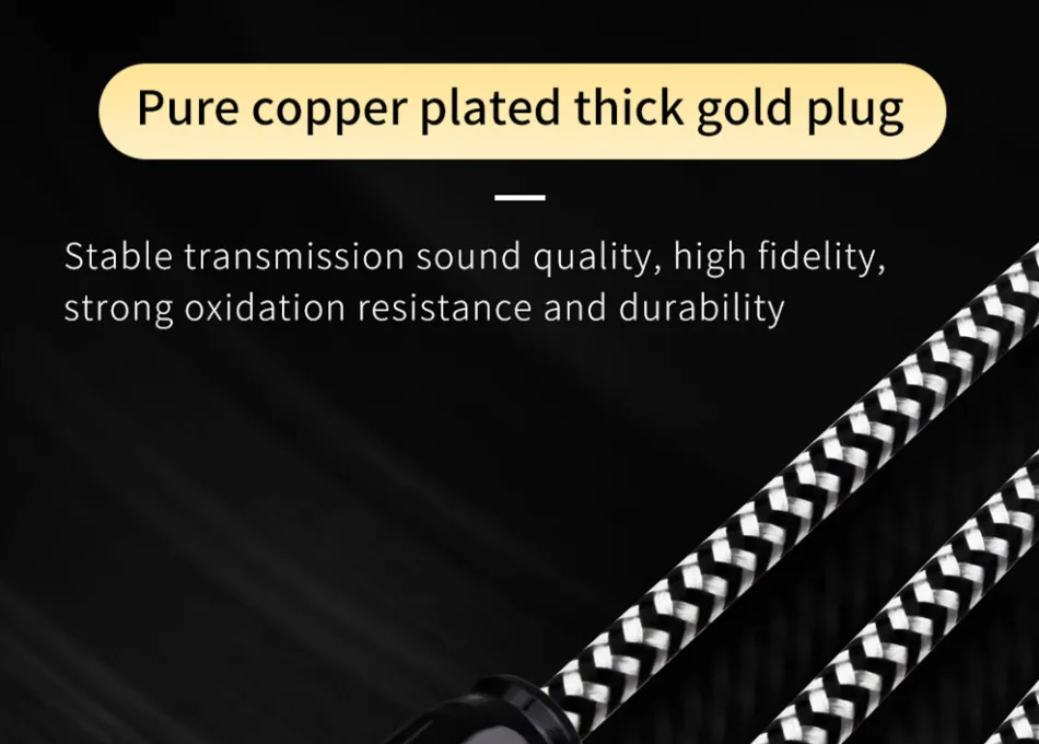 4. Enchufe de oro grueso Chapado en cobre puro. Calidad de sonido de transmisión estable, alta fidelidad, fuerte resistencia a la oxidación y durabilidad.