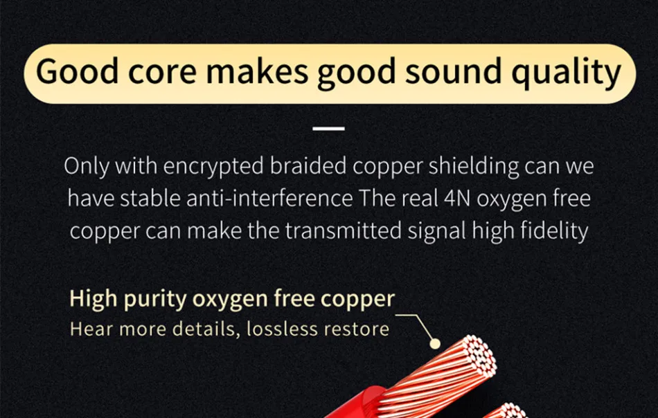 2. Un buen núcleo hace una buena calidad de sonido. Solo con blindaje de cobre trenzado encriptado podemos tener una antiinterferencia estable. El oxígeno 4N real de cobre libre puede hacer que la señal transmitida sea de alta fidelidad.