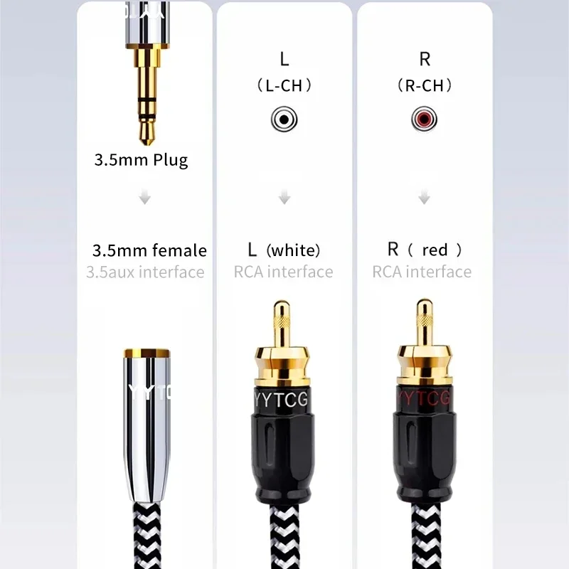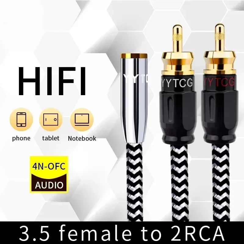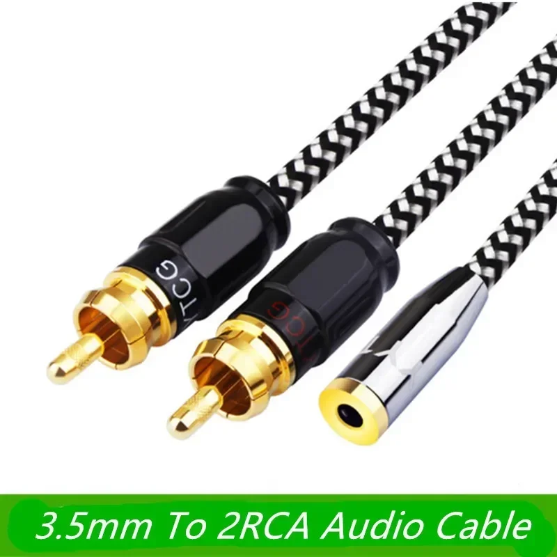 -1 Conector de 3,5mm hembra a 2 cables RCA, divisor de audio 1 a 2, cable de altavoz HiFi(Elija más cantidad, más barato)