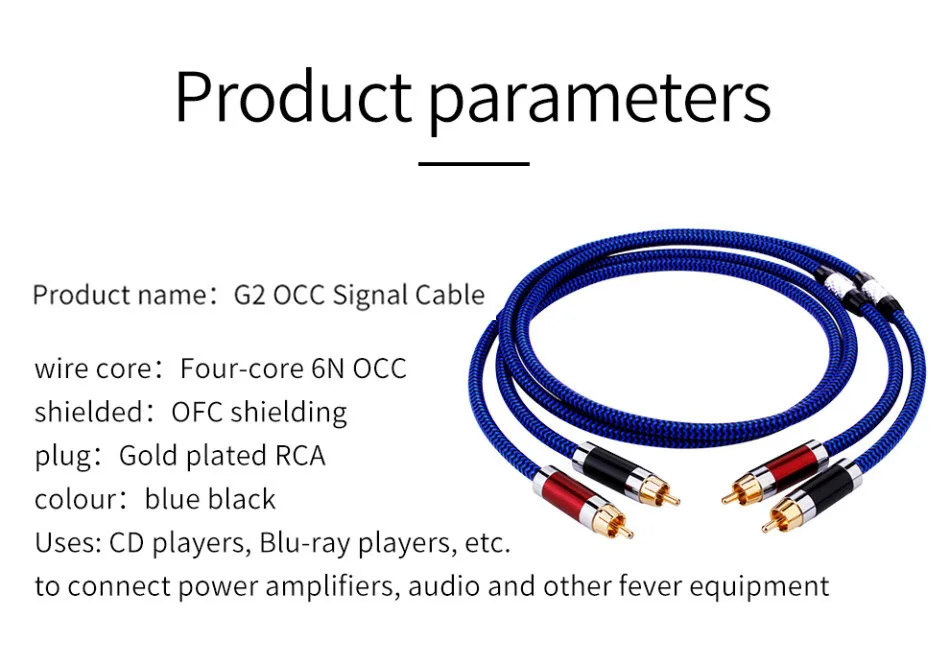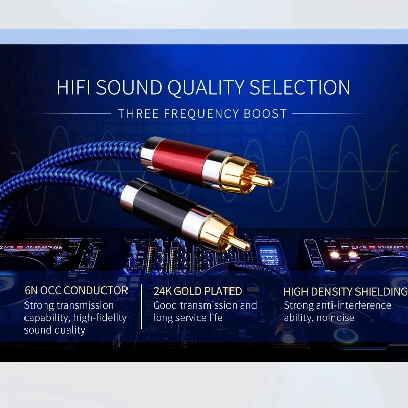1. Nombre: Cable RCA 2RCA macho a 2RCA macho Cable de señal de cobre de cristal único