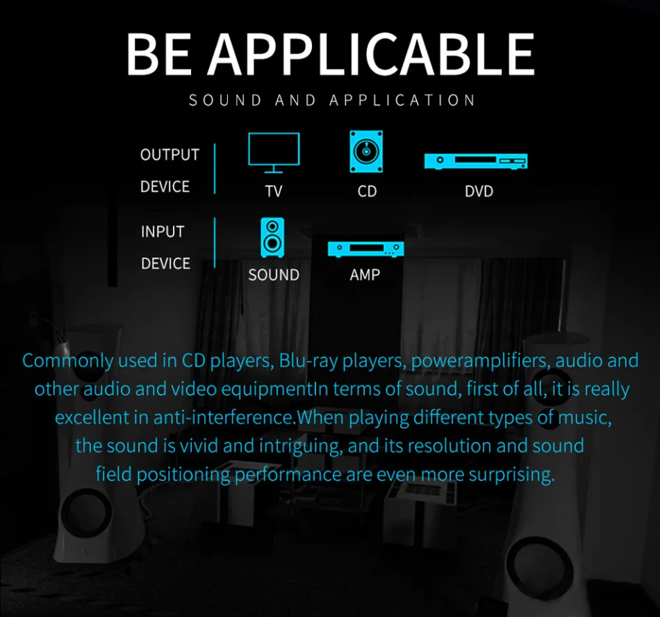 10. Aplicable: REPRODUCTOR DE CD, amplificador de potencia, altavoz, mezclador, etc. Diseño de alta potencia de reducción de ruido de anillo de fibra de carbono, calidad de sonido sin distorsión Cable OFC de alta pureza, hace que el fondo de la música sea más silencioso, sonido limpio, grueso de frecuencia media, flexibilidad de baja frecuencia, campo de sonido amplio, fuerza analítica fuerte, calidad de sonido HIFl.