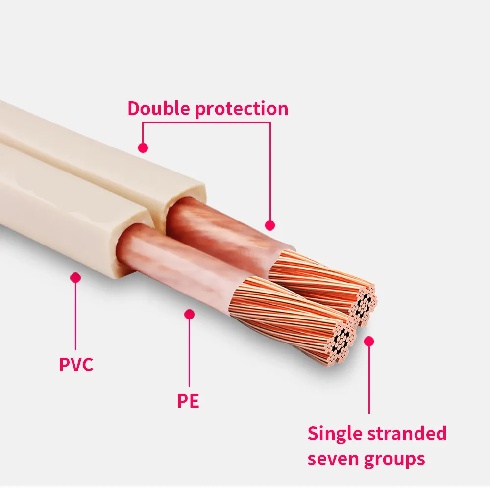 3. Estructura plana flexible, fácil de distinguir entre cableado positivo y negativo.