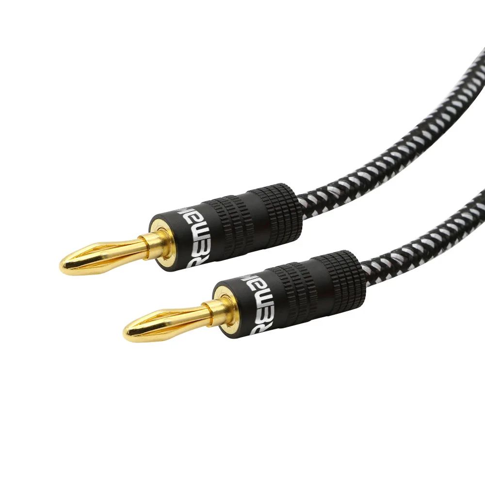 Comprar Cable de altavoz trenzado Hifi con enchufes Banana chapados en oro, Cable de altavoz OFC de cobre puro de alto hilo