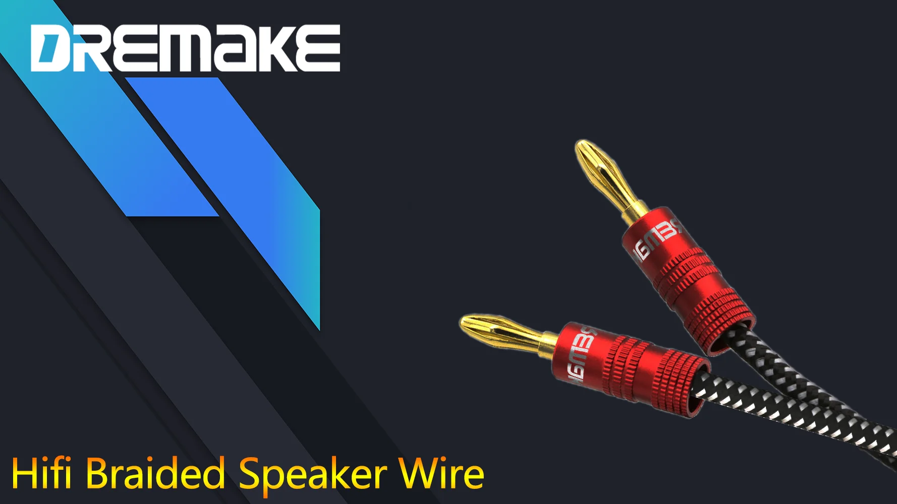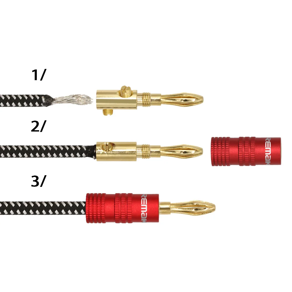 Cable de altavoz trenzado Premium con conectores de aluminio codificados por colores, lo que facilita la coincidencia de la polaridad.