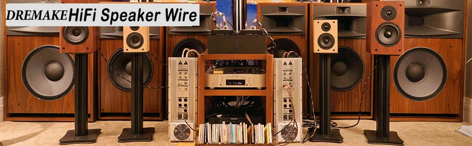 ⭐【Cable de cobre puro OFC】: El cable del altavoz DREMAKE utiliza 2 cables de cobre puro. De hecho, es más duradero que el cobre puro y tiene un rendimiento mucho mejor que el CCA (aluminio revestido de cobre). Los cables OFC pueden proporcionar mayor claridad y precisión del sonido, con mayor conductividad, proporcionando más corriente al amplificador y asegurando una calidad de sonido envolvente de alta fidelidad.