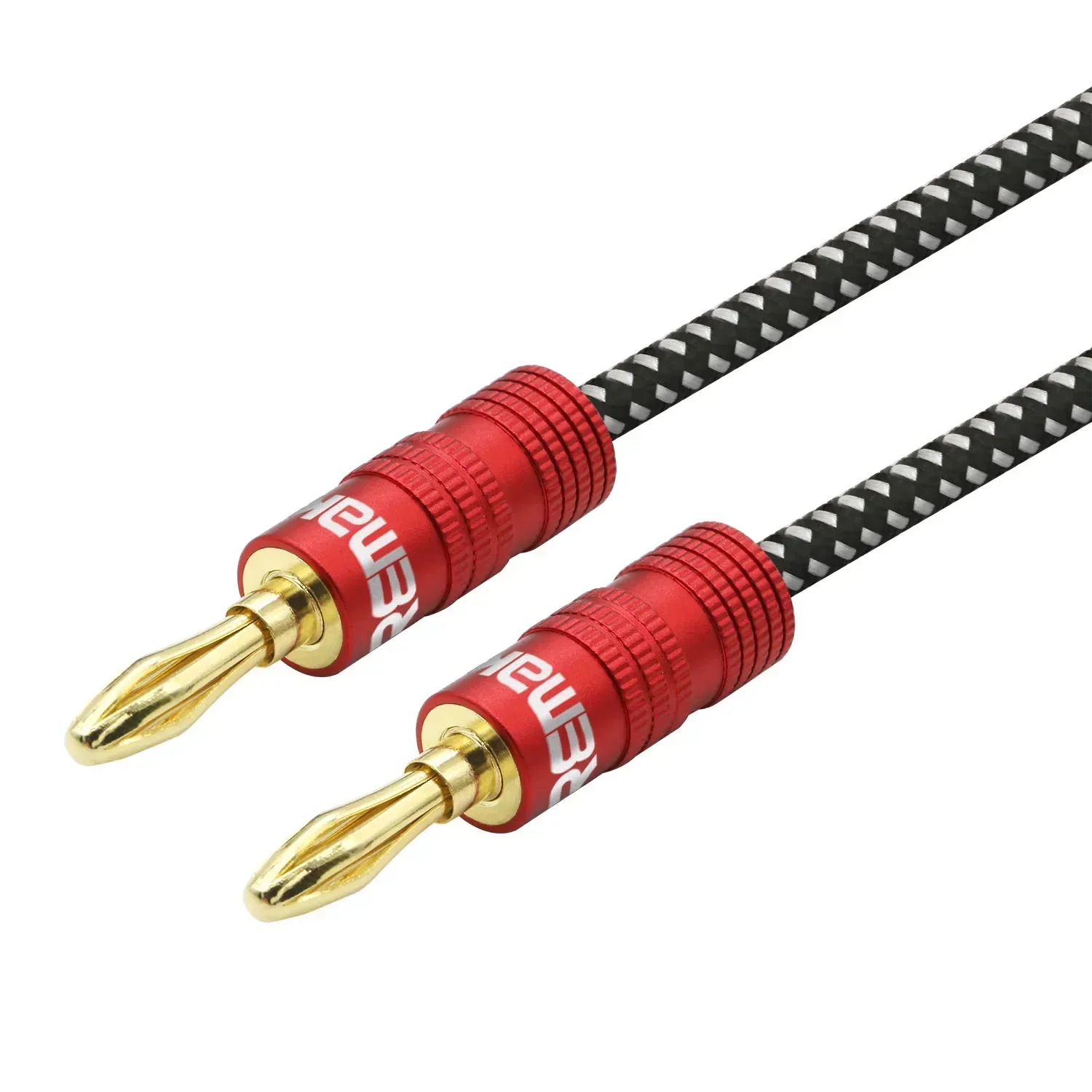 Cable de altavoz trenzado Premium con conectores de aluminio codificados por colores, lo que facilita la coincidencia de la polaridad.