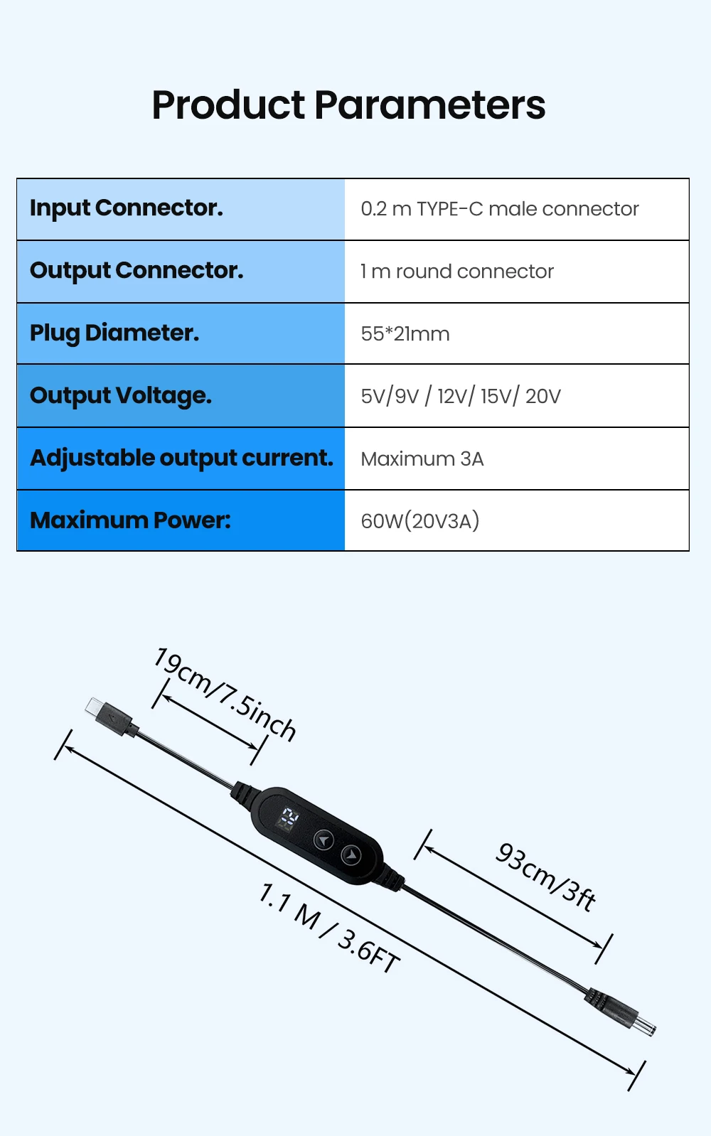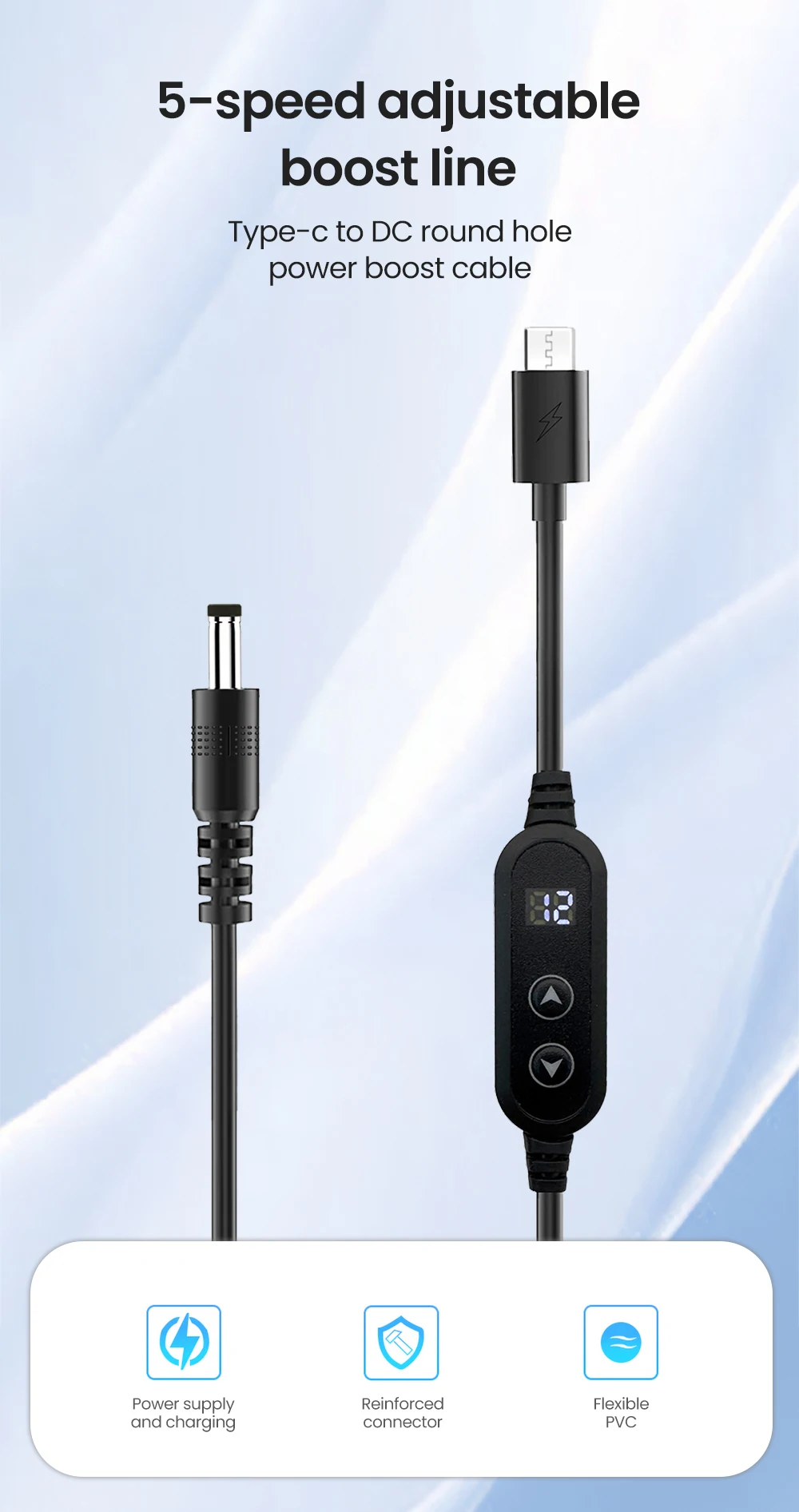 Cable amplificador de potencia tipo C a CC, Cable amplificador de 5V/9V/12V/15V/20V, 8 adaptadores, enrutador Wifi, conector Jack de Cable de altavoz inteligente LED