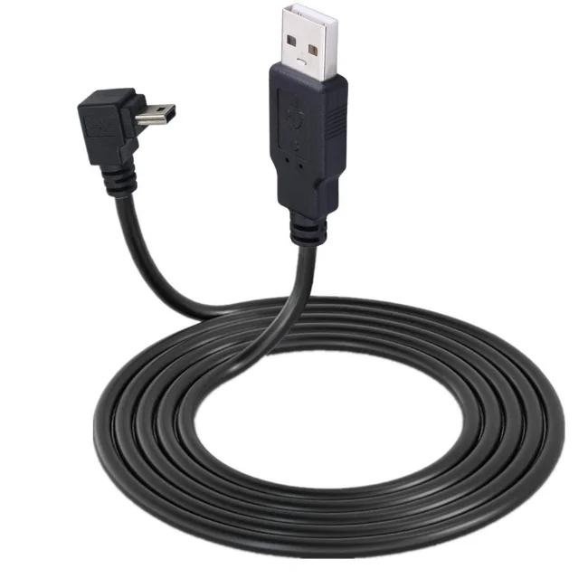 El mini USB de 5 pines tiene un ángulo de 90 grados. otro extremo es el conector USB macho Cable 26/28AWG+AEB, diámetro exterior=3,5 mm para sincronización y carga de datos Longitud: 25 cm/150 cm/300 cm Color negro