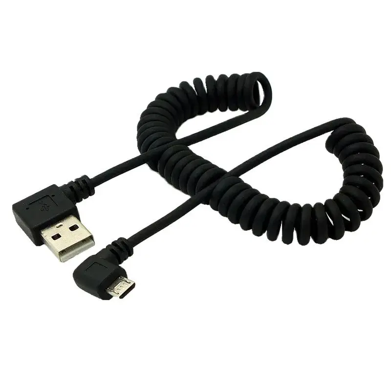 NUEVO micro usb macho 90 grados en ángulo izquierdo a usb macho en ángulo izquierdo srping cable retráctil 1m