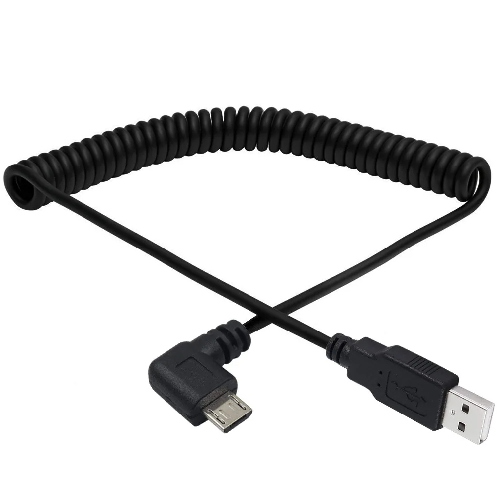 Comprar Cable de ángulo Micro USB de 90 grados, carga USB a Micro USB, resorte retráctil, sincronización rápida de datos, Cable en espiral de 1,5 m