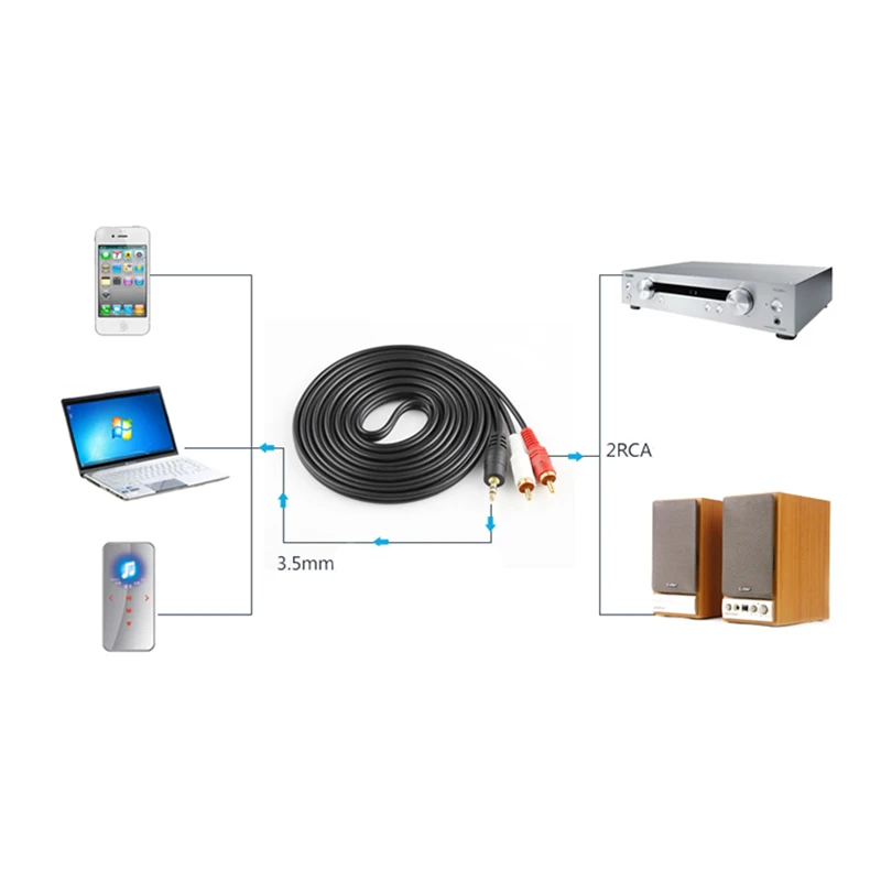 Comprar Cable de Audio de 1m con conector 3,5 a 2 RCA macho a macho, 2 RCA a 3,5mm, Divisor de Cable de Audio estéreo AUX para amplificador de teléfono Edifer